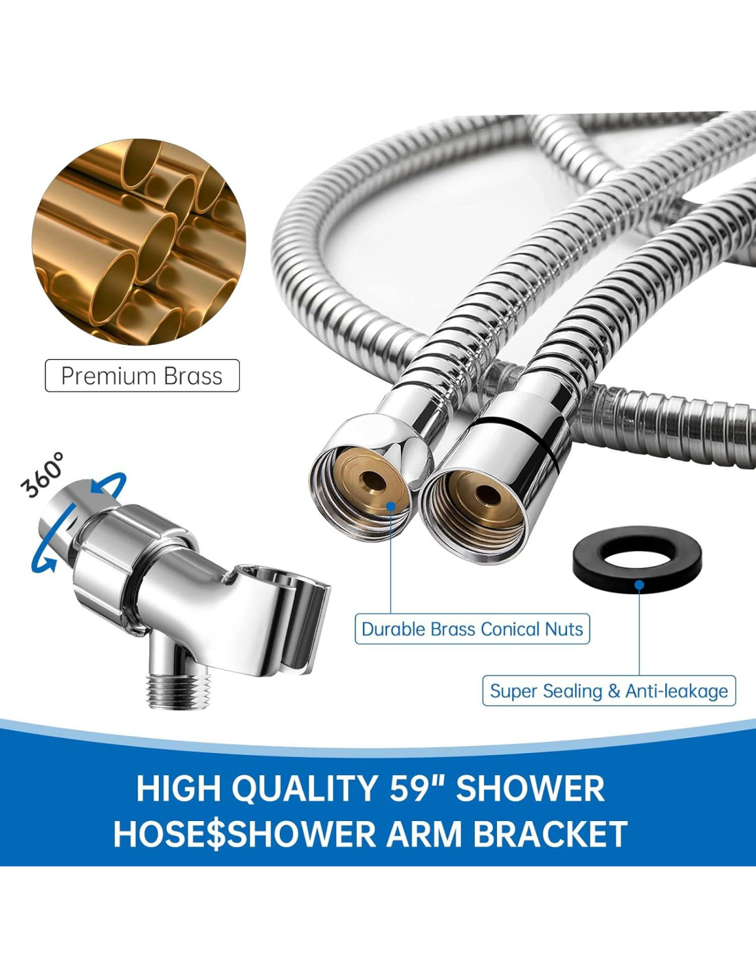 - [Fácil Instalación] ¡POR FAVOR, RECUERDA USAR LA CINTA DE ADHESIVO CUANDO INSTALAS EL CABEZAL DE DUCHA PARA EVITAR FILTRACIONES! El paquete incluye un cabezal de ducha, manguera anti-explosión de 150 cm, soporte, 2 bolsas de perlas de piedra mineral purificadoras de agua extra, cinta PTFE, esponja de baño y 2 paneles de ducha reemplazables. La rosca universal G1/2" se adapta a cualquier tubería de ducha estándar, brazo, extensor o filtro, sin necesidad de plomero y herramientas de conexión, los componentes desmontables se pueden quitar y limpiar fácilmente