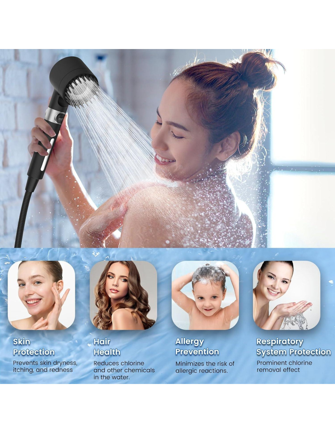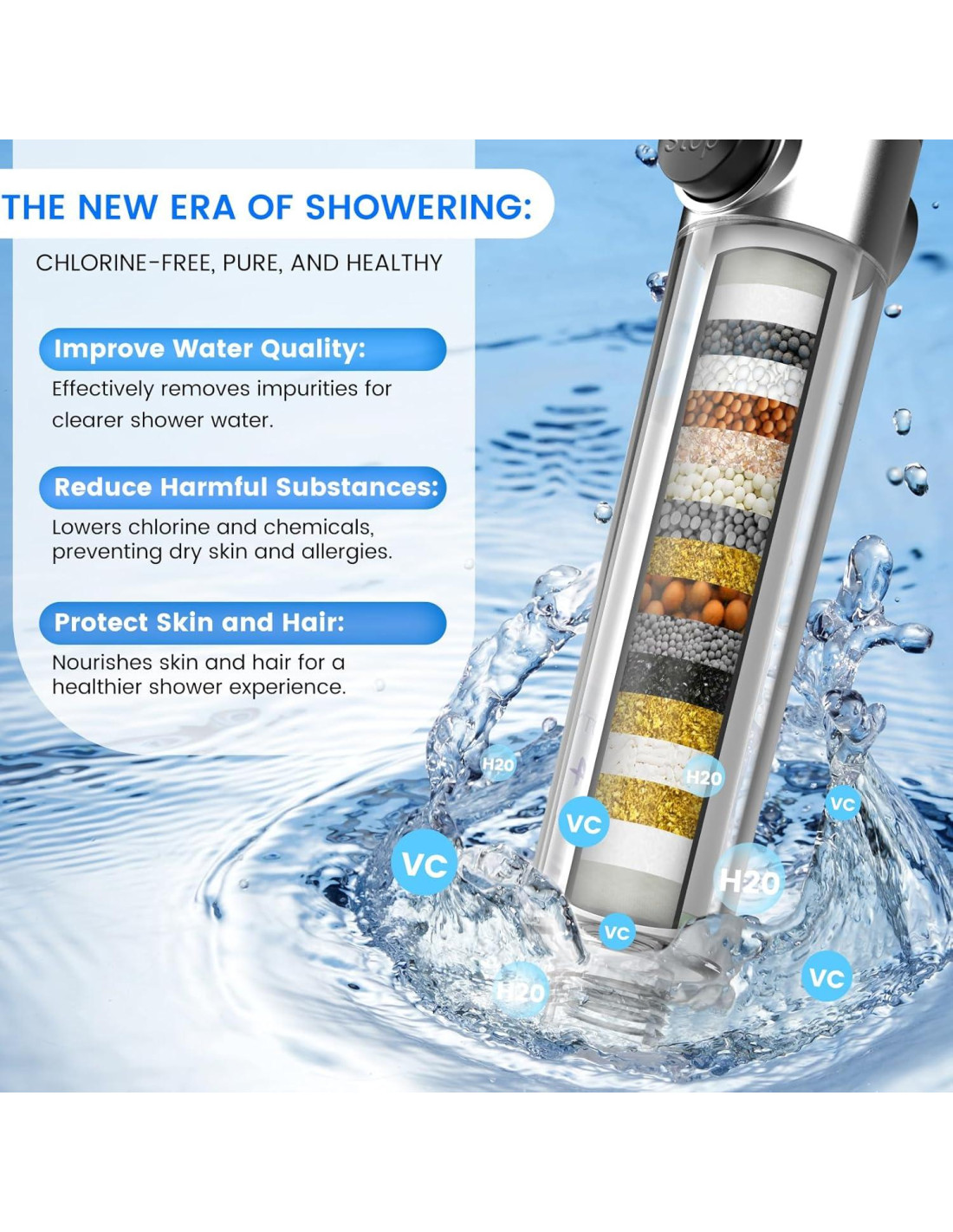 - Cabezal de Ducha Filtrado Mejorado: Elimina el 99.99% del cloro para reducir la sequedad e irritación de la piel y el cabello. Este cabezal de ducha suaviza el agua dura, protegiendo contra daños en la piel y el cabello, con un sistema de filtración de 18 capas que elimina diversas impurezas. Reemplace el cartucho del filtro cada 4-6 meses según la calidad del agua. Para evitar comprar el cartucho de filtro de reemplazo incorrecto, por favor compre el enlace del elemento del filtro en la tienda: B0CPV542QG.