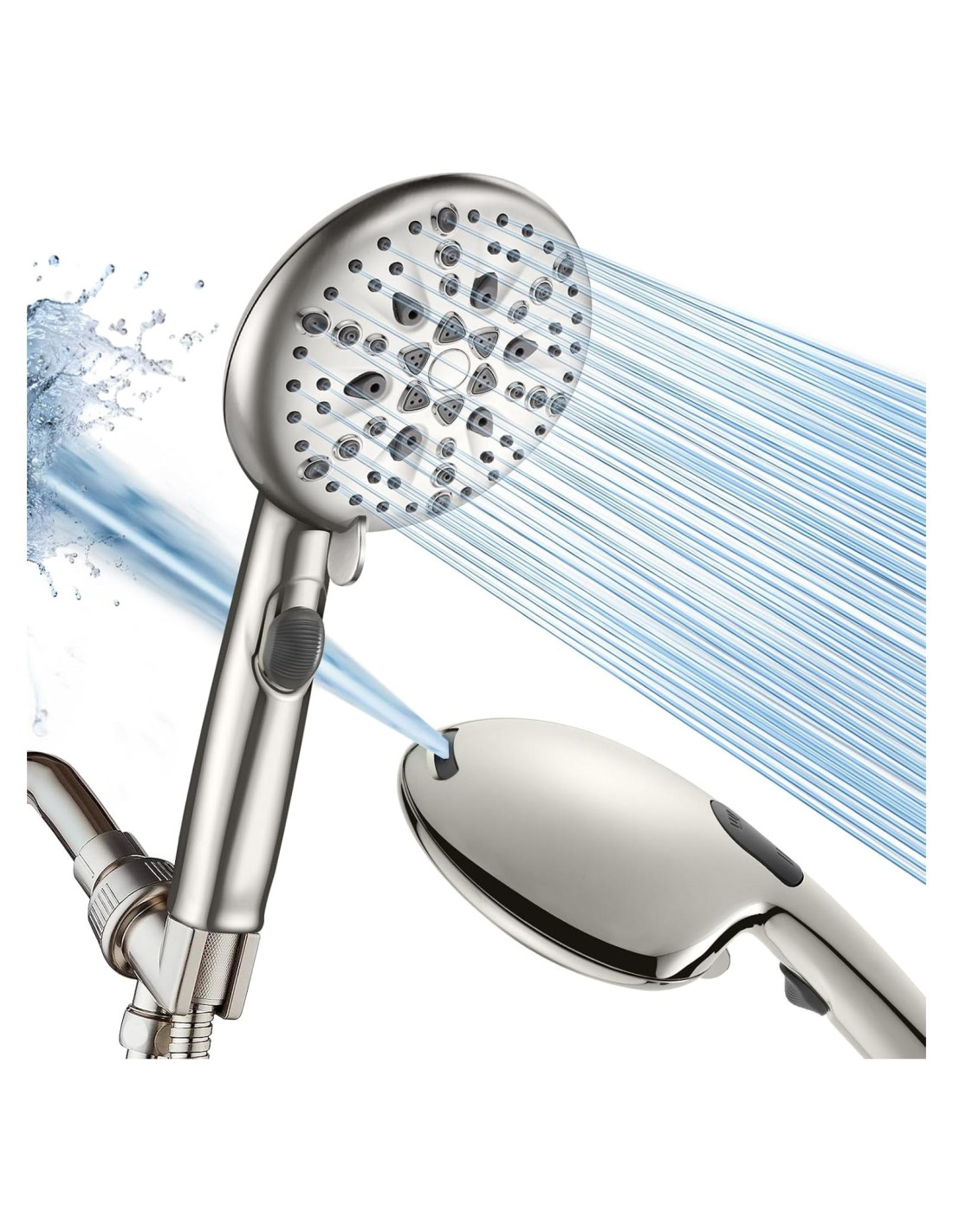 - [Ahorro de Agua con Gran Presión] El cabezal de ducha ahorra más agua que una ducha regular. Tiene una estructura interna única y tecnología de aumento de presión que reconoce rápidamente el jabón y el cabello seco que quedan después de cada ducha en segundos. La potente presión de agua es lo suficientemente suave para tu cuerpo cansado en minutos.