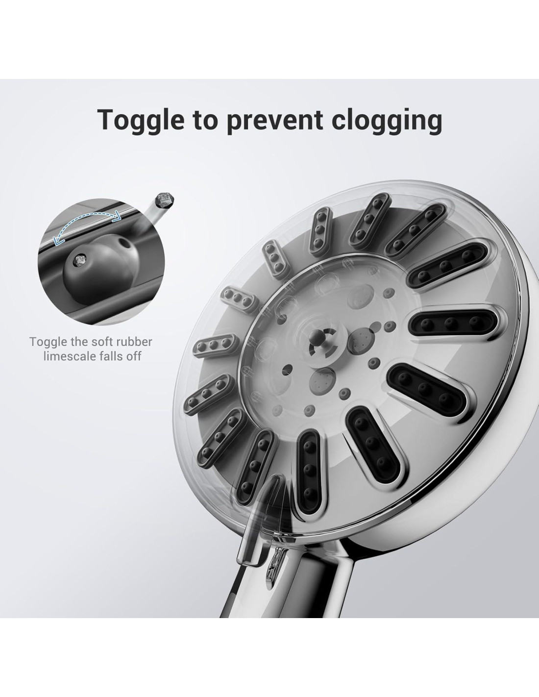 - Cabezal de Ducha Portátil de Alta Presión: Con una tecnología de ingeniería de precisión y aumento de presión, este cabezal de ducha portátil de alta presión proporciona un flujo de agua potente incluso en entornos de baja presión. 92 boquillas de rociado autolimpiantes y resistentes a obstrucciones previenen eficazmente la acumulación de minerales y depósitos de agua dura, proporcionando una experiencia de ducha más fuerte, duradera y limpia.
