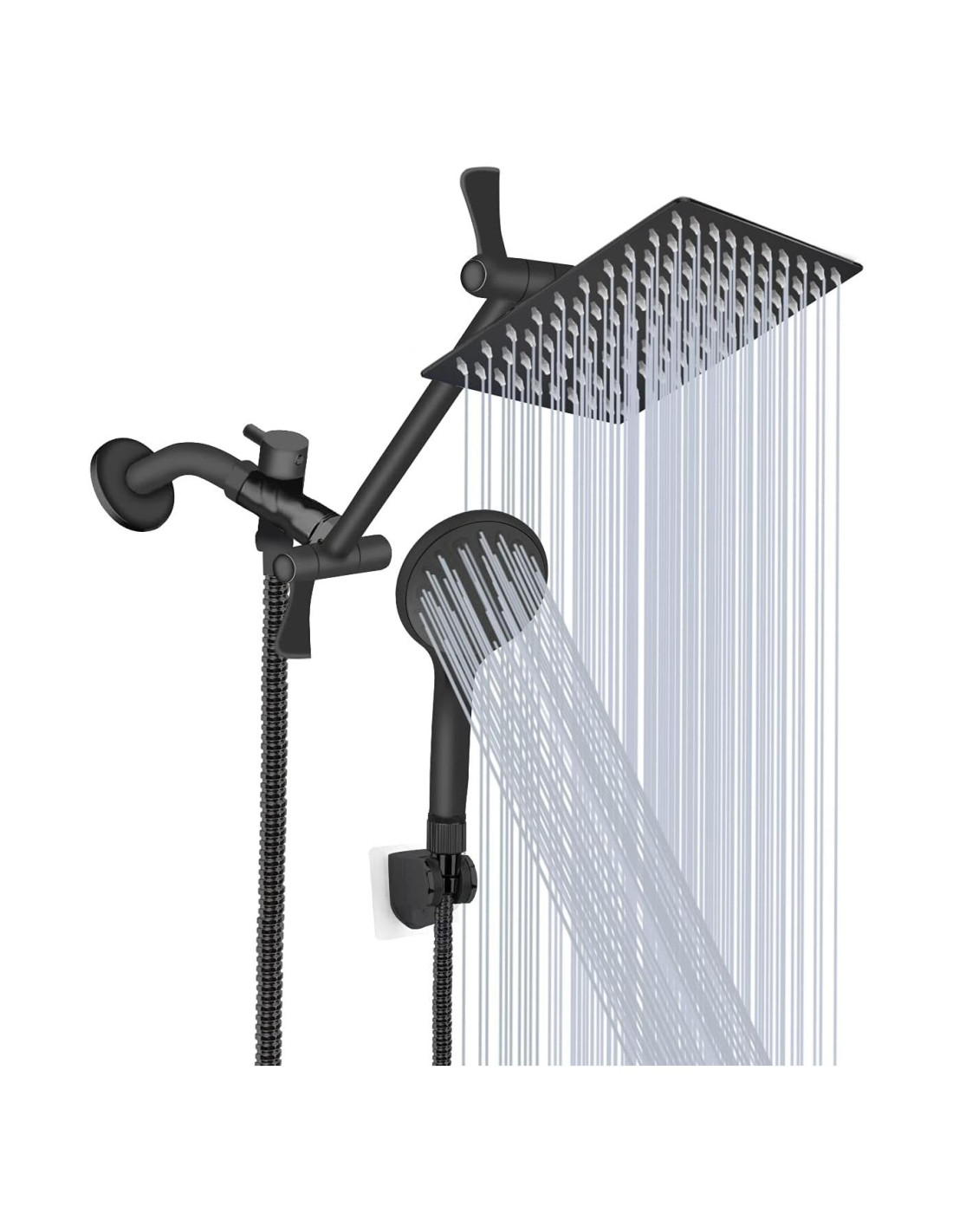 - Combo de Cabezal de Ducha Increíble: Viene con un cabezal de ducha de lluvia cuadrado grande de 8'', cara negra mate de 4.5'' 9 configuraciones de rociado, manguera de acero inoxidable de 5 pies (1,52 m), regulador de flujo de agua, desviador de 3 vías, soporte de ducha con fuerte ventosa, cinta de Teflón, arandelas, manual de instalación y garantía. [Tasa de flujo máximo: 1.75 gpm (6,63 lpm)], [Fabricante: Tudoccy], [Código de registro CEC: SUB99575], [Modelo: SHP-HS]
