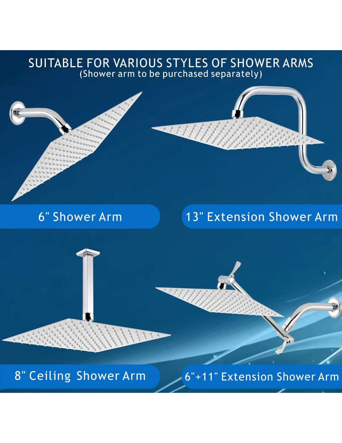 - PROTECCIÓN CONTRA FILTRACIONES Y RÓTURA - Nuestro cabezal de ducha cuadrado está hecho de acero inoxidable 304 sólido de alta calidad, aspecto moderno de cromo de lujo, duradero con la mayor resistencia a la oxidación y larga vida útil. Para prevenir filtraciones, utilizamos la mejor junta de goma suave.