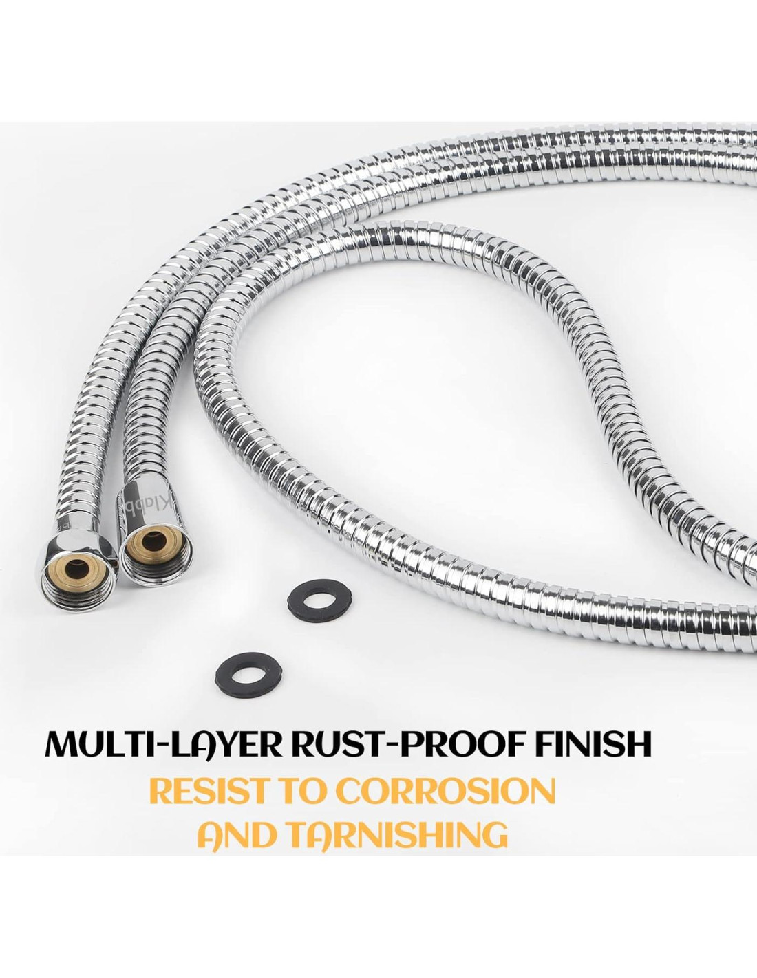 Klabb es una marca premium de accesorios para baño especializada en mangueras de ducha y otros productos de alta calidad. Nuestros diseños duraderos y funcionales están hechos de materiales de primera calidad como acero inoxidable y latón, asegurando un rendimiento duradero. Estamos comprometidos a proporcionar productos de primera categoría y su satisfacción, convirtiéndonos en la marca de referencia para todas sus necesidades de accesorios de baño. Esta manguera de ducha para cabezal de ducha cuenta con conectores de latón sólido con una conexión G1/2. Después de ser rigurosamente probada, la manguera de ducha de mano es resistente a altas temperaturas, a prueba de explosiones, a prueba de fugas, a prueba de corrosión y ofrece alta flexibilidad y durabilidad. La manguera de ducha cromada de diferentes tamaños presenta un diseño único de doble bloqueo con juntas impermeables integradas y está hecha de acero inoxidable 304 de primera calidad. Esta manguera de ducha extra larga para ducha de mano es fácil de instalar sin cinta. La manguera de ducha es conveniente para limpiar inodoros, limpiar pañales de bebé, bañar mascotas, enjuagar sillas de inodoro, etc. La longitud flexible y larga facilita alcanzar cualquier otra cosa alrededor. Ahorra esfuerzos en el cuidado de ancianos, discapacitados, post-cirugía que necesitan sentarse en una silla o tirar del rociador hacia la bañera.