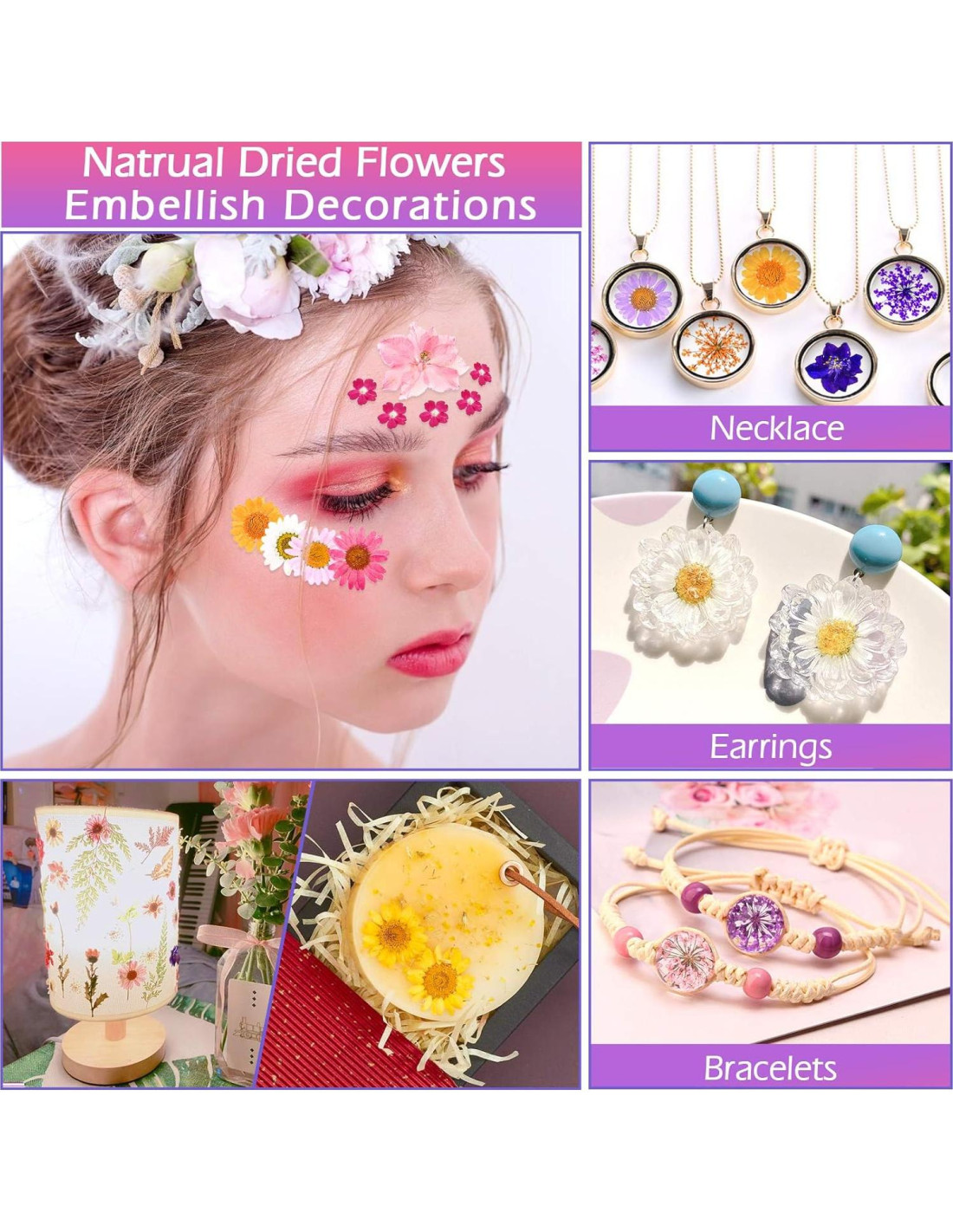 - Las flores variadas y coloridas son suficientes para decoraciones de álbumes de recortes, suministros de resina, rellenos de resina y moldes de epóxido como peines, posavasos, llaveros, Joyería Hecha a Mano, marco de resina dentro de flores pequeñas, Multiusos para el día a día como Jabón, Bombas de Baño, Suministros para Fabricación de Velas, DIY de Fundas de Teléfono, Joyería Hecha a Mano, Maquillaje Facial, Arte de Uñas, con colores vibrantes (Verde, Rosa, Púrpura, Amarillo, Rojo, Naranja) que destacarán inmediatamente tu creación.