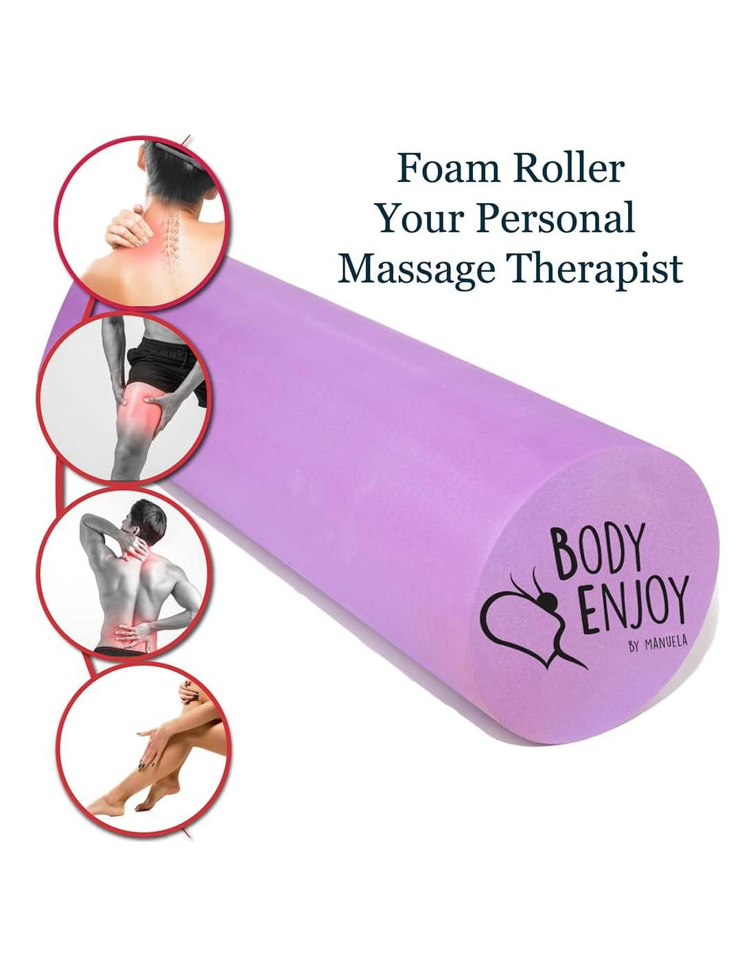 El rodillo de masaje morado es ideal para la parte superior e inferior de la espalda, cuello, cabeza, todos los lados de las piernas (frente, atrás, exterior e interior), muslos, pantorrillas, espinillas, caderas, omóplatos, brazos superiores y antebrazos