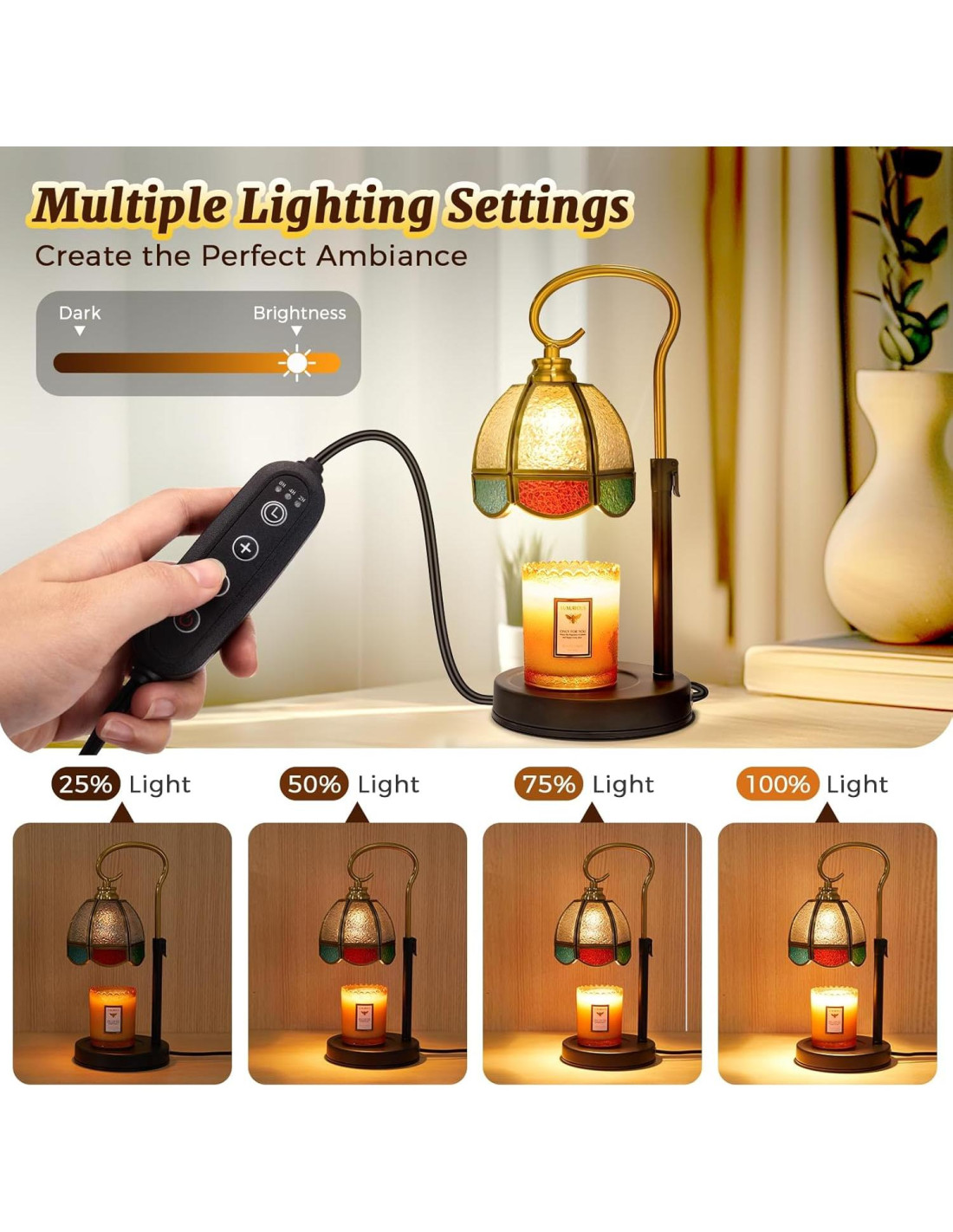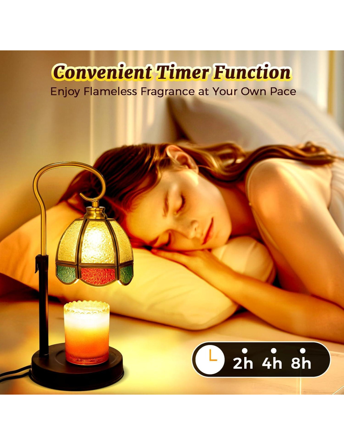 - [Temporizador y Regulador de Luz] Esta lámpara calentadora de velas ofrece 3 configuraciones de temporizador con apagado automático (2H/4H/8H), por lo que no necesitas monitorearla. La cera se derrite en 10-15 minutos, liberando fragancia. La luz y el calor ajustables proporcionan una experiencia personalizable.
