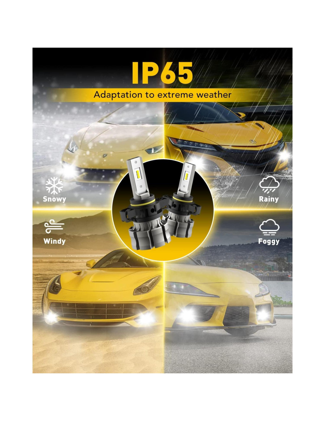 - [IP65 Impermeable]: IP65 impermeable y a prueba de polvo, funcionan bien durante días de lluvia, nieve o niebla, brindando al conductor una mejor vista en mal tiempo. Incluso en condiciones climáticas extremas, el conductor puede tener una visión perfecta y ver peatones y vehículos a la distancia con estas bombillas LED 5202.