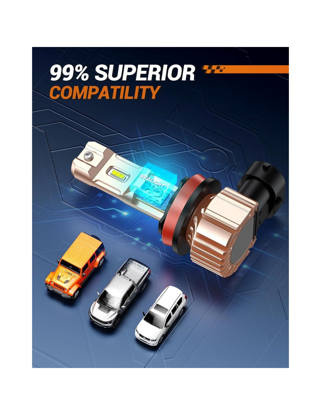 - 600% Super Brillo: La bombilla LED SEALIGHT H11 tiene un brillo de hasta 14000LM, 6500K blanco frío proporciona un campo de visión más claro y amplio, la bombilla de luz de niebla LED SEALIGHT H11 redefine el brillo y la seguridad de la luz del automóvil