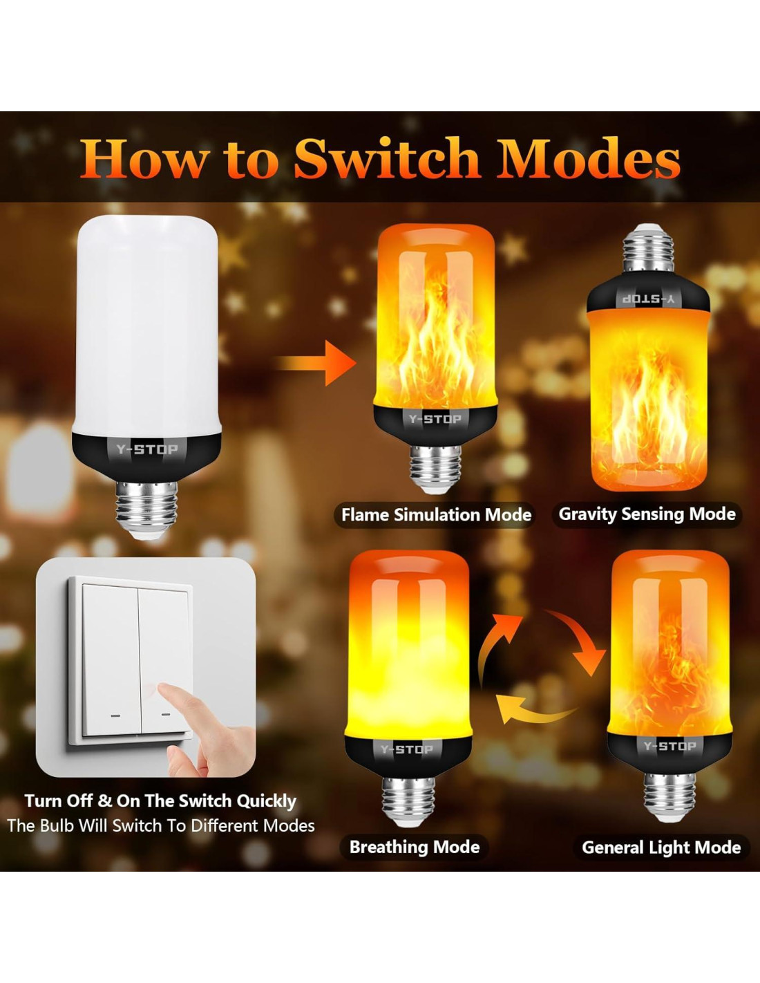 Muy adecuada para decoración interior, puedes decorarla en tu dormitorio, sala de estar, cocina, etc., haciendo que tu habitación se sienta instantáneamente cálida y acogedora. Perfecta para decoración exterior, puedes decorarla en tu jardín, porche, efecto de llama realista, añadiendo una atmósfera romántica y única a tu jardín. La bombilla de efecto de llama es un producto mágico, luz naranja, una bombilla de llama como una llama, que se ve extra cálida en el frío invierno. Perfecta para fiestas navideñas, árboles de Navidad y decoraciones de estufas. Efecto de llama realista, muy adecuada para fiestas de Halloween, eventos temáticos de Halloween y decoraciones de casas embrujadas. El cálido color de llama naranja hace que tu casa se vea más misteriosa, romántica y hermosa. Es un sustituto perfecto para las velas tradicionales y bombillas, perfecta para la decoración del Día de San Valentín. Las bombillas de luz de llama LED Y- STOP no solo son luces esenciales para la vida diaria, sino también las luces de ambiente más populares para Halloween, Navidad, Día de San Valentín, Acción de Gracias y otros festivales.