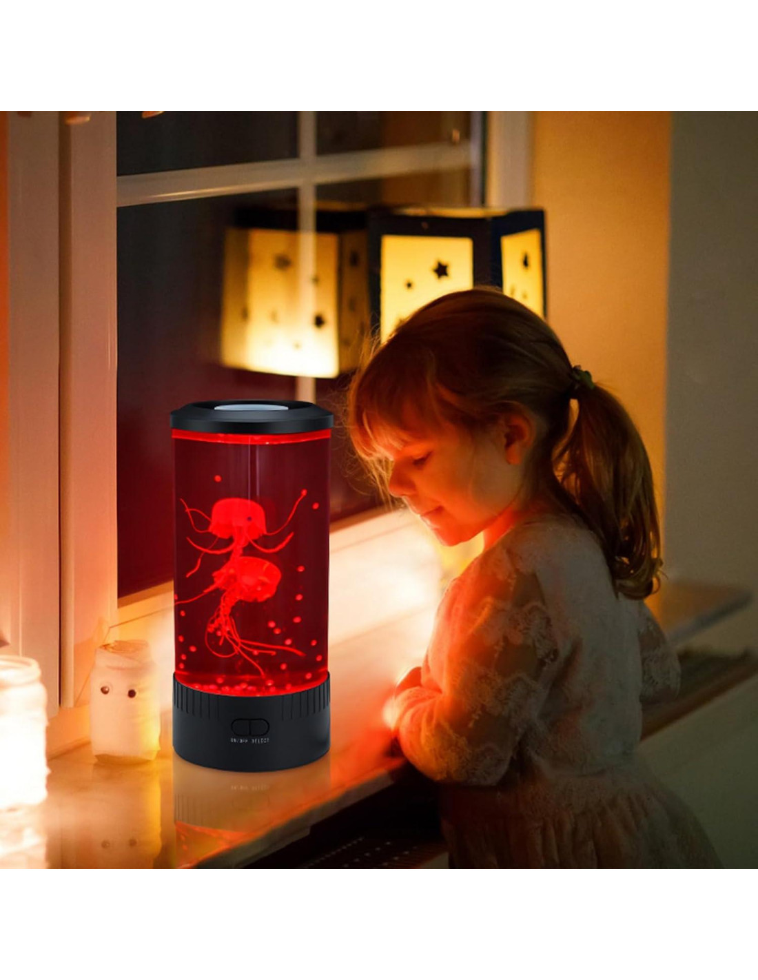 - Lámpara Encantadora para Niños Esta Lámpara de Acuario estimula una atmósfera de fondo marino en la habitación de tu hijo, fomentando sus habilidades de reconocimiento de colores y reduciendo sus niveles de estrés. Perfecta para crear un ambiente relajante que ayuda en su sueño.