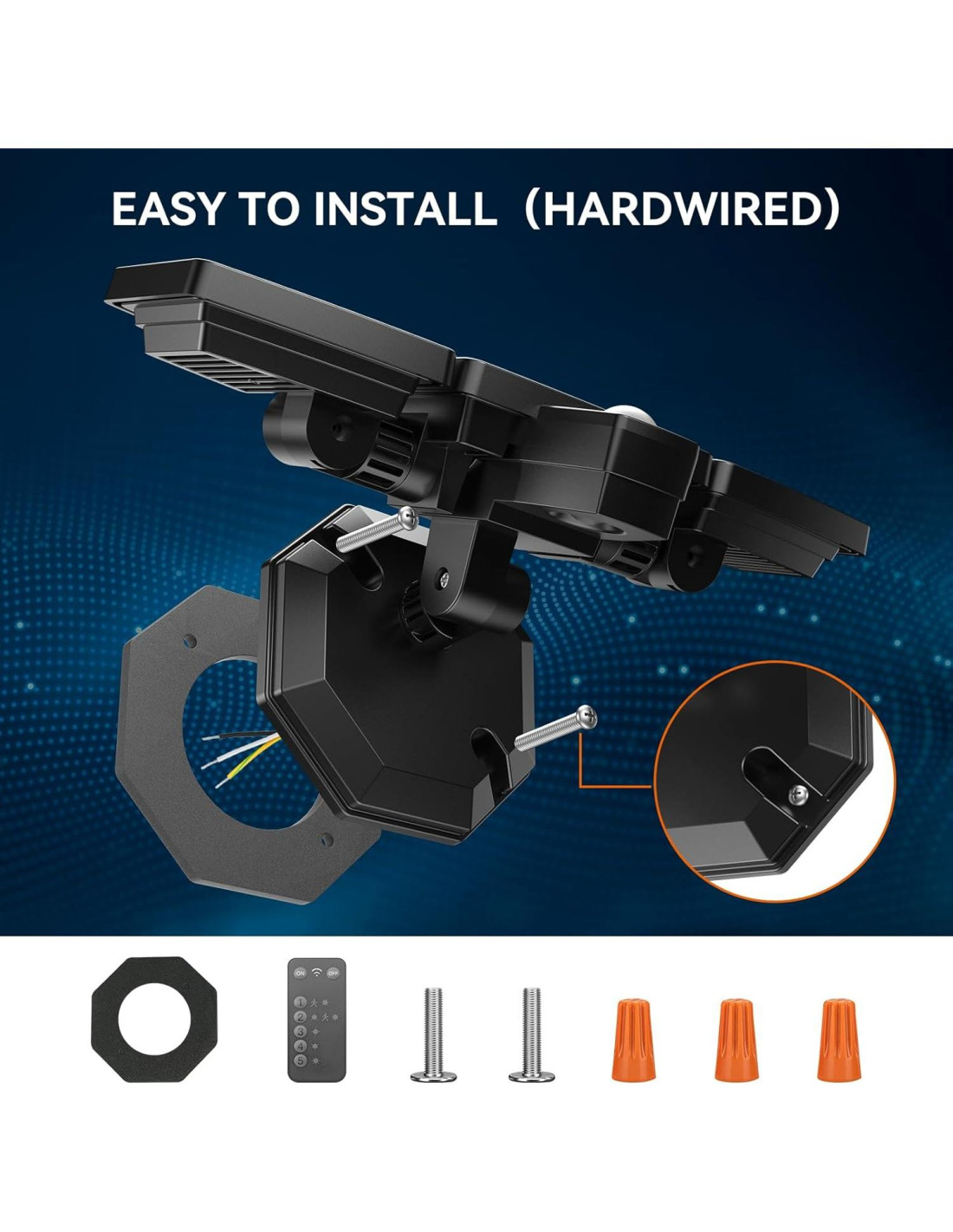 - Cada luz de inundación exterior de 65W viene con 229 LEDs, produciendo hasta 6500 LM de salida de alta luminosidad, 6500K Luz Diurna. Además, ofrece más del 95% de ahorro energético en comparación con las bombillas halógenas tradicionales. Los 3 cabezales ajustables y el diseño único de cuatro haces proporcionan una iluminación uniforme y extensa
