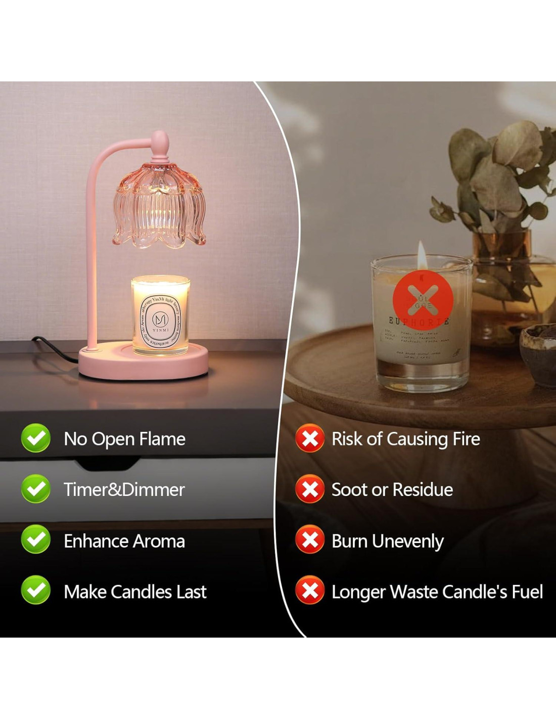 - Disfrute de fragancias sin llamas y seguro: La lámpara calentadora de velas te permite disfrutar de tus velas favoritas sin llamas, humo o hollín. Nuestro calentador eléctrico derrite la cera de manera uniforme con protección contra sobrecalentamiento y apagado automático, perfecto para hogares con niños, mascotas o noches acogedoras sin preocupaciones.