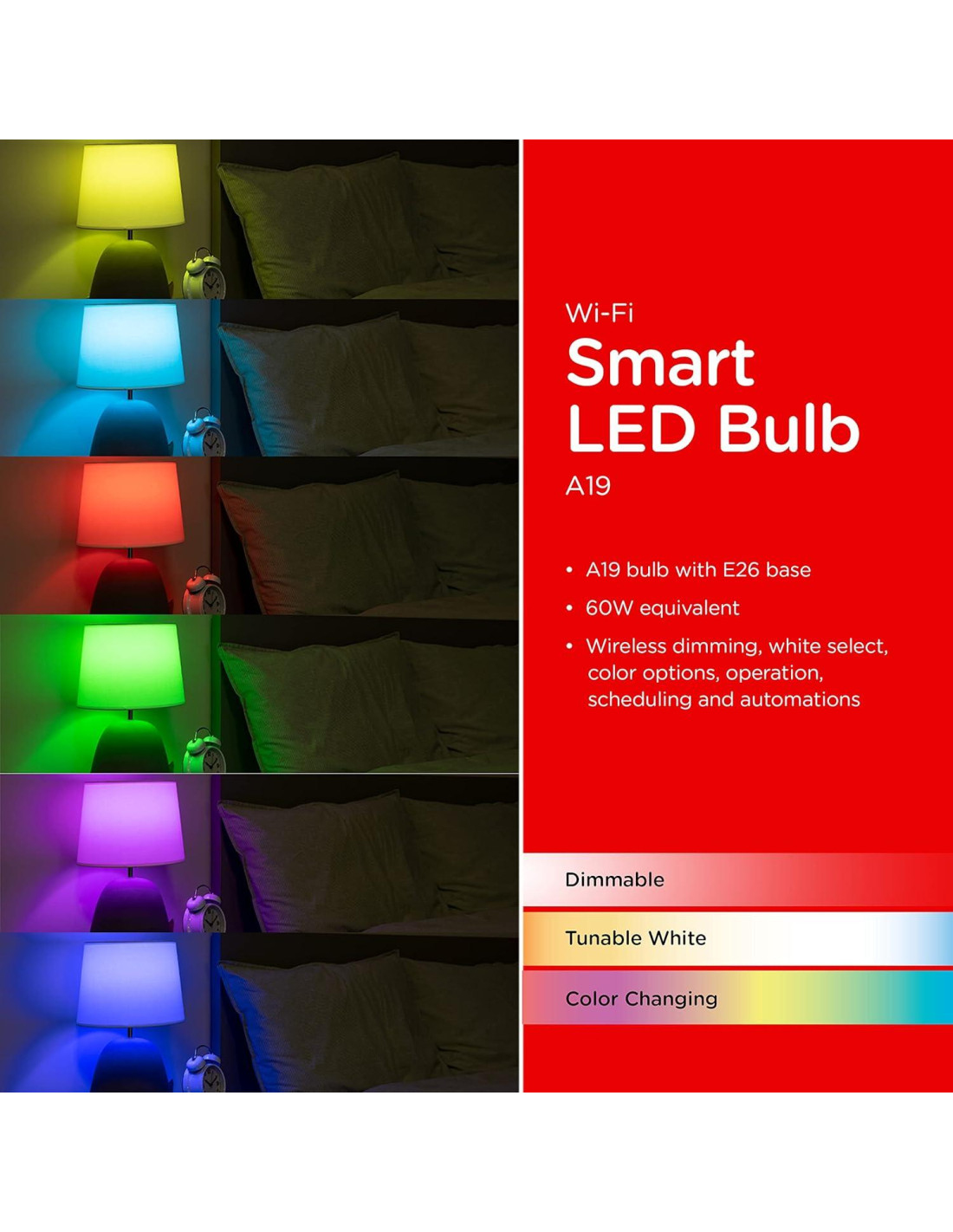 - Ajuste Estándar - Reemplaza cualquier bombilla A19 con base E26 para convertir lámparas equivalentes a 60W, iluminación de acento, accesorios de techo y más en luces inteligentes - no apto para usar con reguladores de pared