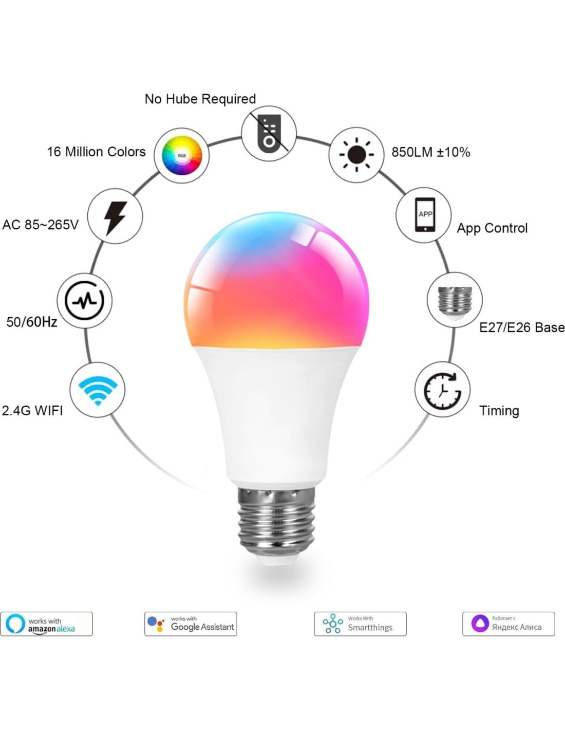 - [CONECTIVIDAD VERSÁTIL]: Conéctate fácilmente a través de WiFi (solo 2.4G) para una integración sin problemas. Esta bombilla de color inteligente te permite controlar la iluminación a través de tu aplicación para mayor comodidad y flexibilidad. Controla tu bombilla inteligente con facilidad usando la aplicación TUYA SMART LIFE. Ajusta el tono, el brillo y el color desde tu smartphone, asegurando la máxima comodidad y convirtiéndola en una de las mejores bombillas inteligentes que funcionan con Alexa.
