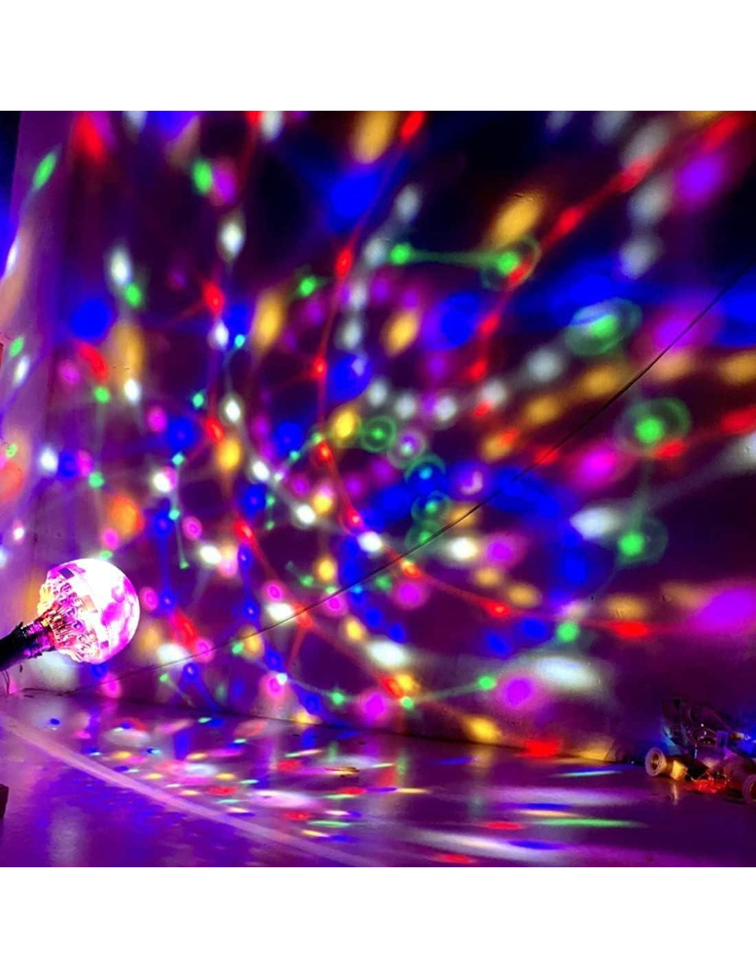 - Fácil de usar - La bombilla LED giratoria utiliza una base estándar E27 para adaptarse a la mayoría de los accesorios de iluminación y se puede instalar fácilmente en cualquier accesorio o lámpara. Las luces de fiesta pueden proyectar patrones multicolores giratorios en la pared, el techo o el suelo donde quiera. Adecuada para disco, salón de baile, club, bar, Navidad. Solo enchufe y use.