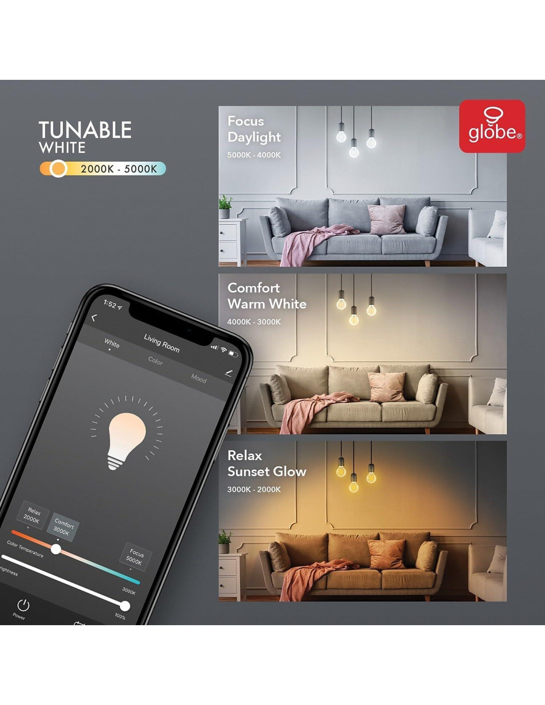 - CONFIGURACIÓN FÁCIL - SIN HUB REQUERIDO: Simplemente descarga la aplicación GLOBE SUITE, conéctate a tu Wi-Fi doméstico y sincroniza tu bombilla.