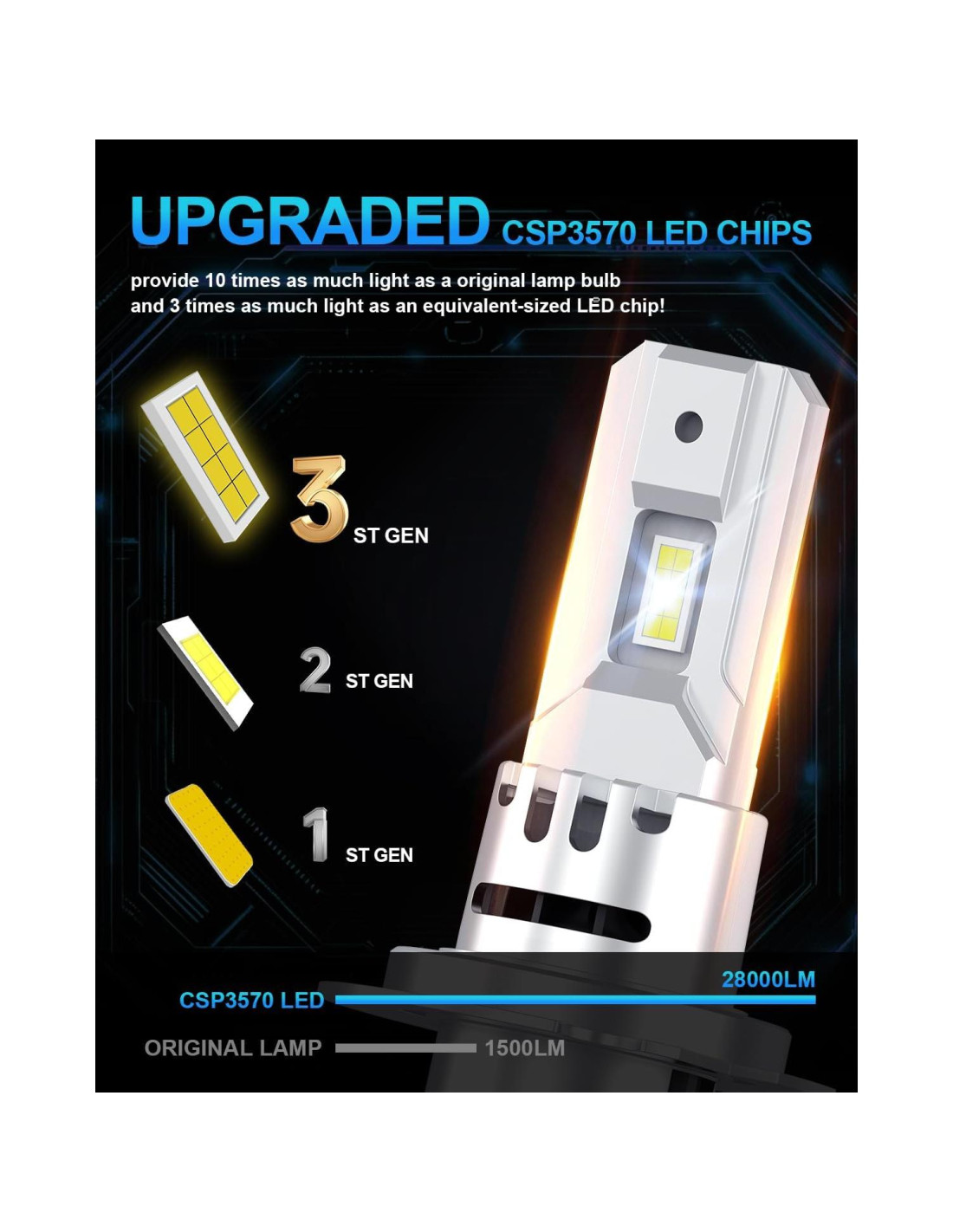 - 600% Iluminación Ultra BrillanteNuestra bombilla de niebla LED H7 de lupuauto proporciona un brillo alto de 600% 28000LM y luz blanca fría de 6500K. La bombilla de luz de niebla LED H7 equipada con tecnología de haz de precisión de vanguardia, proporciona alta visibilidad y un amplio rango visible en condiciones climáticas como niebla, lluvia, nieve y noche. Proporciona iluminación confiable y eficiente, mejora la seguridad y asegura la mejor experiencia de conducción.