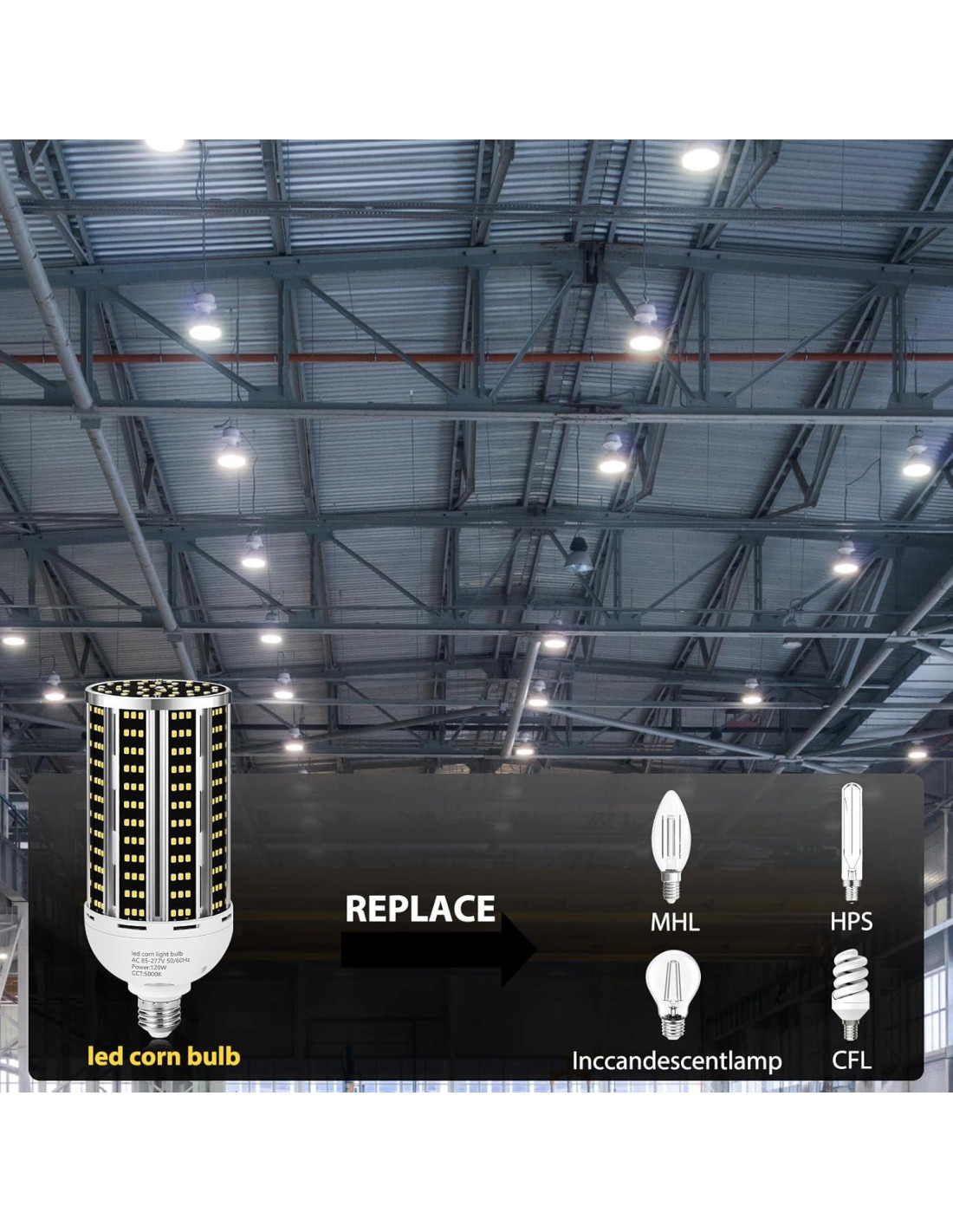 - Calidad: bombilla LED de maíz de 120 vatios sin ventilador, fabricada con materiales y circuitos de aluminio de primera calidad, larga vida útil, y nuestro equipo de soporte al vendedor siempre respalda nuestros productos de cualquier manera, así que contáctenos si tiene algún problema de calidad