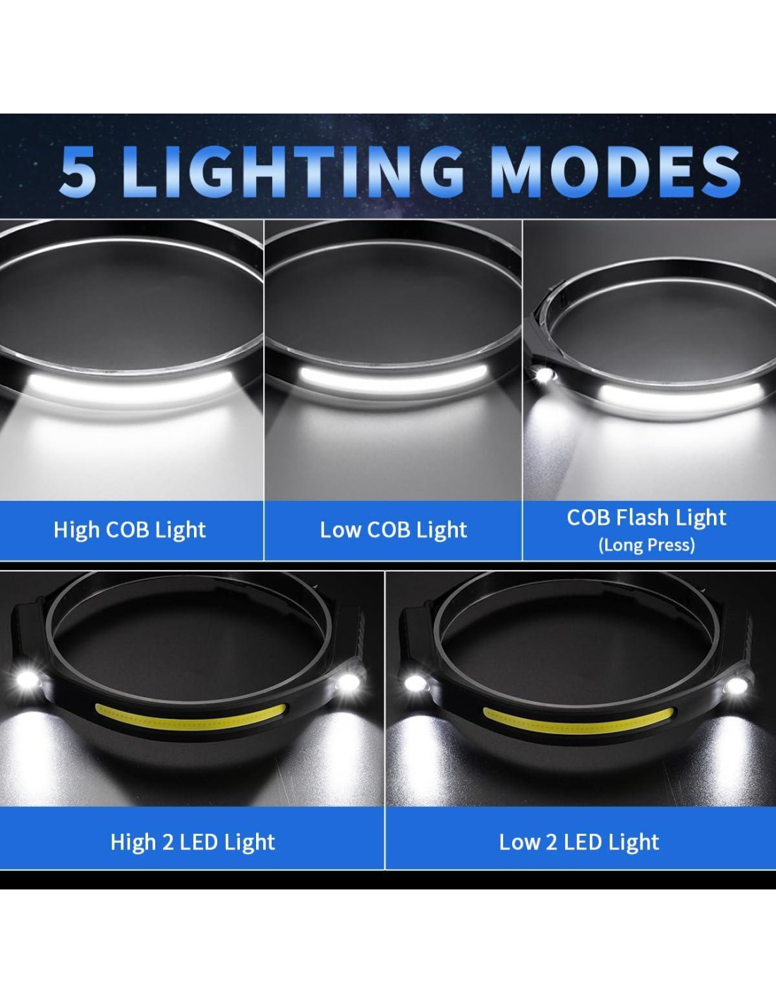- Haz Amplio y Larga Distancia: Las luces para la frente con haz amplio COB proporcionan 230 de iluminación de ángulo amplio, dándote una gran vista por la noche. El foco LED ultra brillante en el lado de la luz frontal ilumina una distancia de casi 300 pies (91,44 m), haciendo que la linterna sea adecuada para una variedad de escenarios para satisfacer tus necesidades.