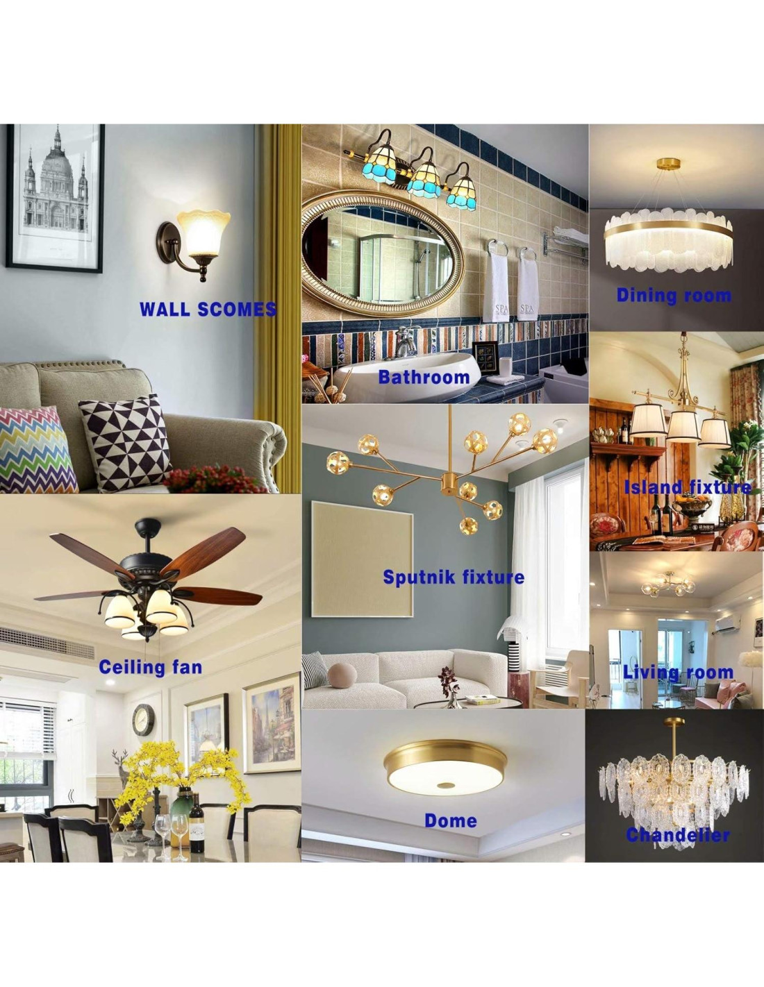 - ESTILO COMPACTO Y AMPLIAS APLICACIONES: El estilo compacto ofrece suficiente luz para tu familia y su apariencia es adecuada para la mayoría de los accesorios con base de bombilla E26, como accesorios de candelabro, apliques de pared, accesorios de ventilador de techo, accesorios colgantes, etc.