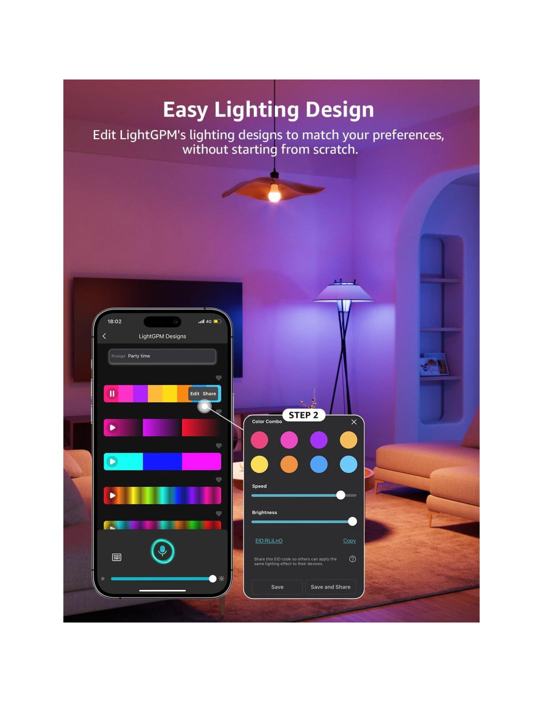 - Sincronización Musical LightBeats: Con los algoritmos de LightBeats, la iluminación dinámica de la bombilla B2 que cambia de color puede sincronizarse inteligentemente y sin problemas con los ritmos de la música. Transforma cualquier espacio en un viaje musical energético y fascinante, perfecto para fiestas o bailar con amigos.