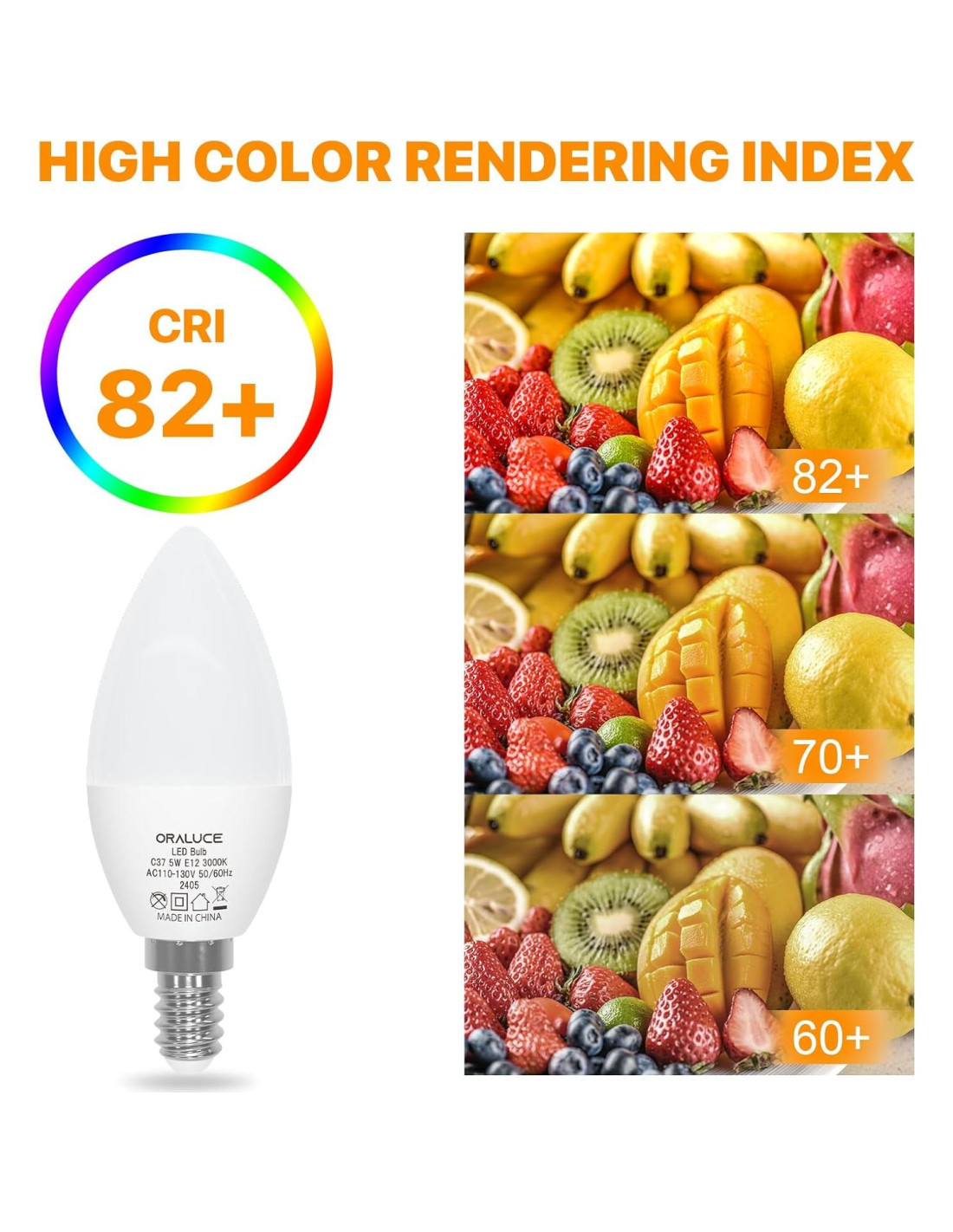 - Precisión de Color Mejorada: Ilumina tu entorno con nuestras bombillas de alto CRI de 82, que realzan los verdaderos colores de tu vista. Esta superior precisión de color aporta una calidad vibrante y natural a cada espacio.