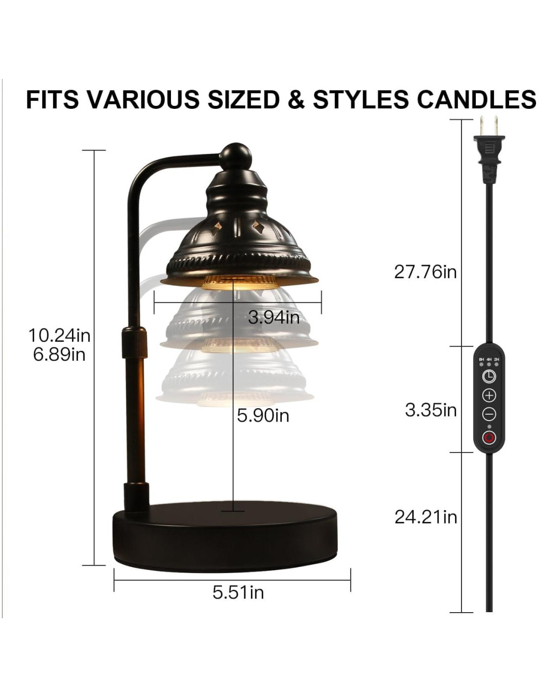 - DISEÑO VERSÁTIL: Lámpara de altura ajustable con acabado negro clásico y pantalla decorativa perfecta para calentar velas de manera segura