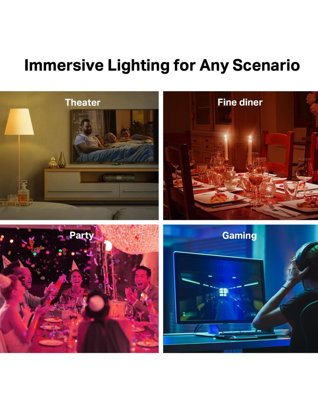- 16M Colores & Verdadero Blanco Elige entre 16 millones de colores o ajusta la bombilla de blancos cálidos a fríos (2500K-6500K) gracias al LED RGBW de verdadero blanco. Explora infinitas posibilidades de iluminación inteligente para crear tus efectos de luz favoritos para todo, desde una fiesta hasta una sesión de estudio nocturna.