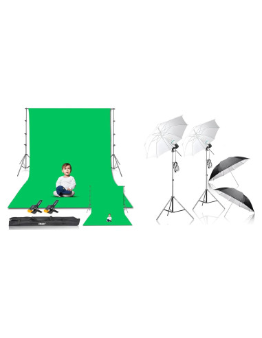 - Soporte de fondo: Este kit es un soporte profesional con altura ajustable (mínimo 0.9m - máximo 2.6m) y ancho (mínimo 1.5m - máximo 3.0m) de construcción de aleación de aluminio para durabilidad y portabilidad. Puede ser ensamblado por una persona en solo unos minutos.