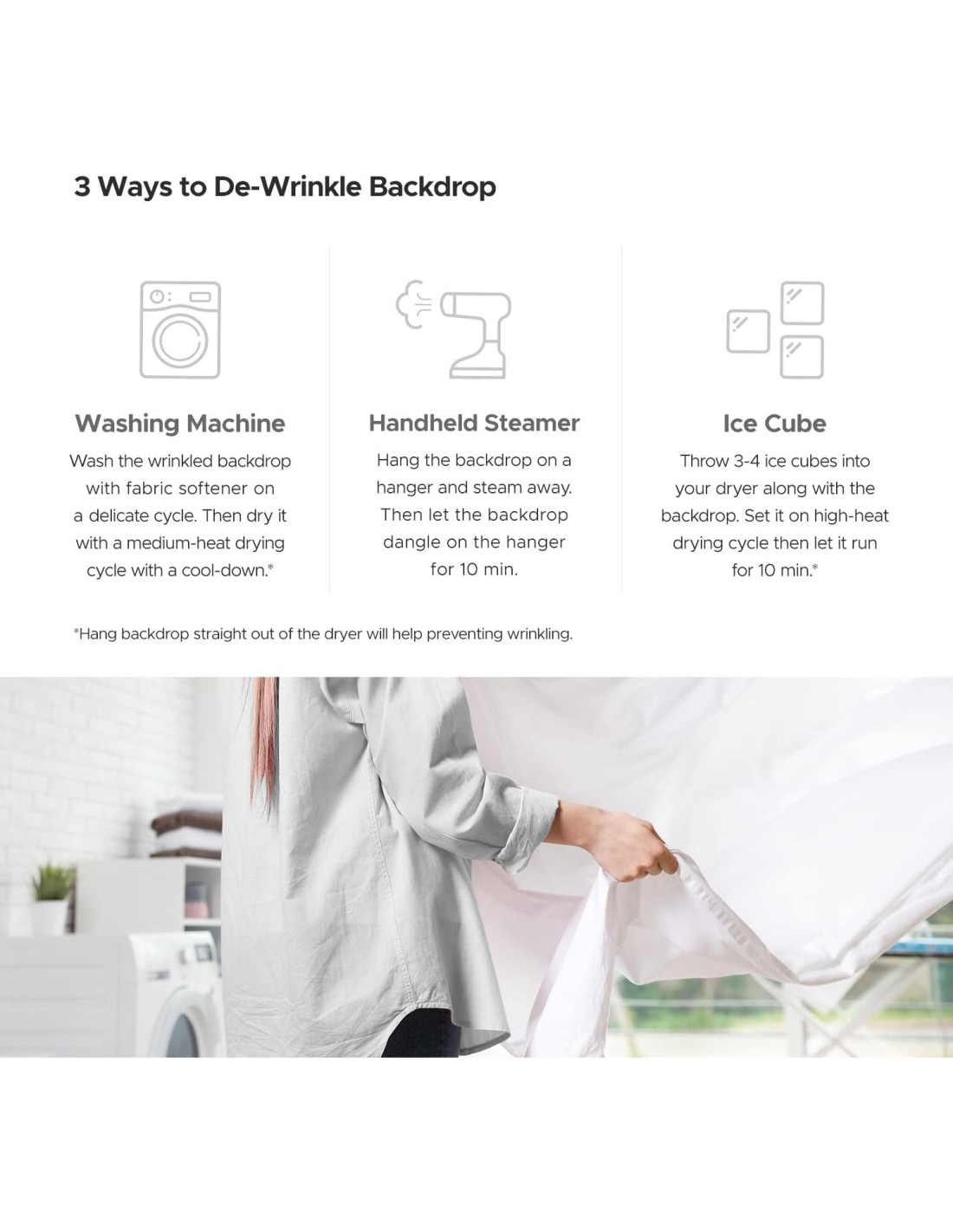 Todos los bordes están cuidadosamente terminados para prevenir desgarros en el material, y en caso de que se manche. Se puede limpiar en seco e incluso lavar a máquina. Tejido de textura suave y un tejido mate más duradero ayudan a reducir la luz reflejada. Apertura de mandíbula de 5 cm para adaptarse a la mayoría de los soportes de tamaño estándar; Perfecto para colgar el fondo en un sistema de soporte con un buen y resistente agarre.
