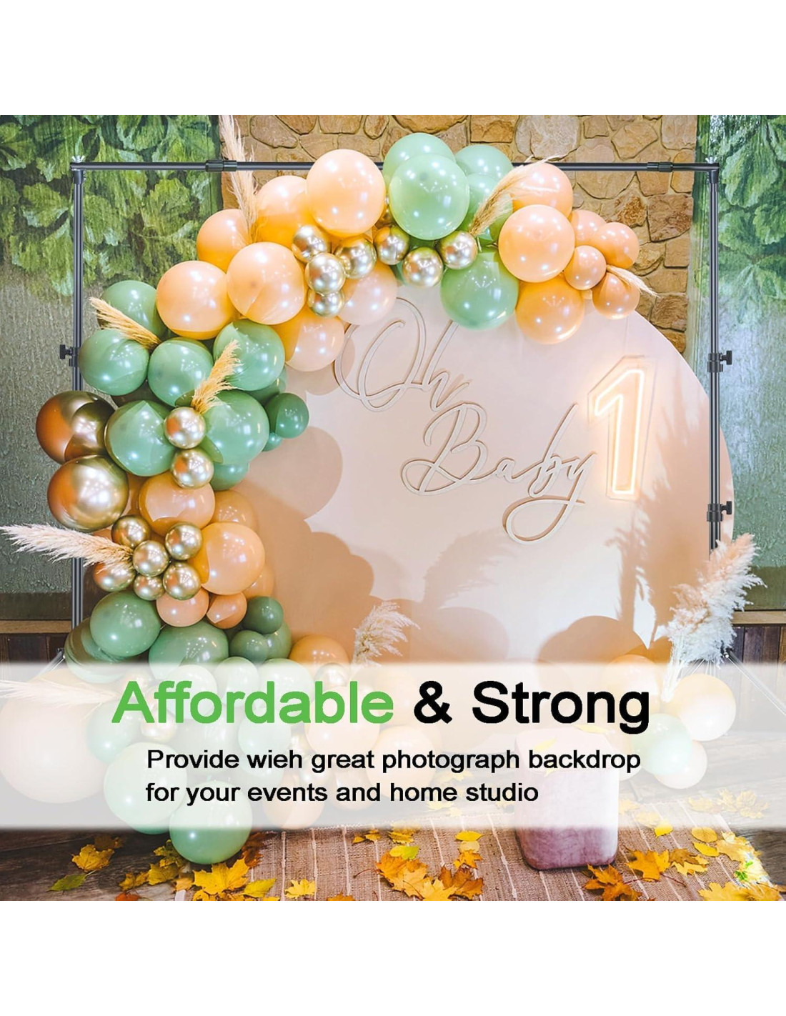 - [Soporte de Fondo Ajustable] Nuestro soporte ofrece ajuste de altura versátil de 2.7 a 8.5 pies (0.82 a 2.59 metros). La barra transversal es retráctil, permitiendo ajustes de ancho de hasta 10 pies (3.05 metros). Adapta el soporte para que se ajuste a cualquier tamaño de fondo, asegurando un ajuste y configuración perfectos para tus diversas necesidades.