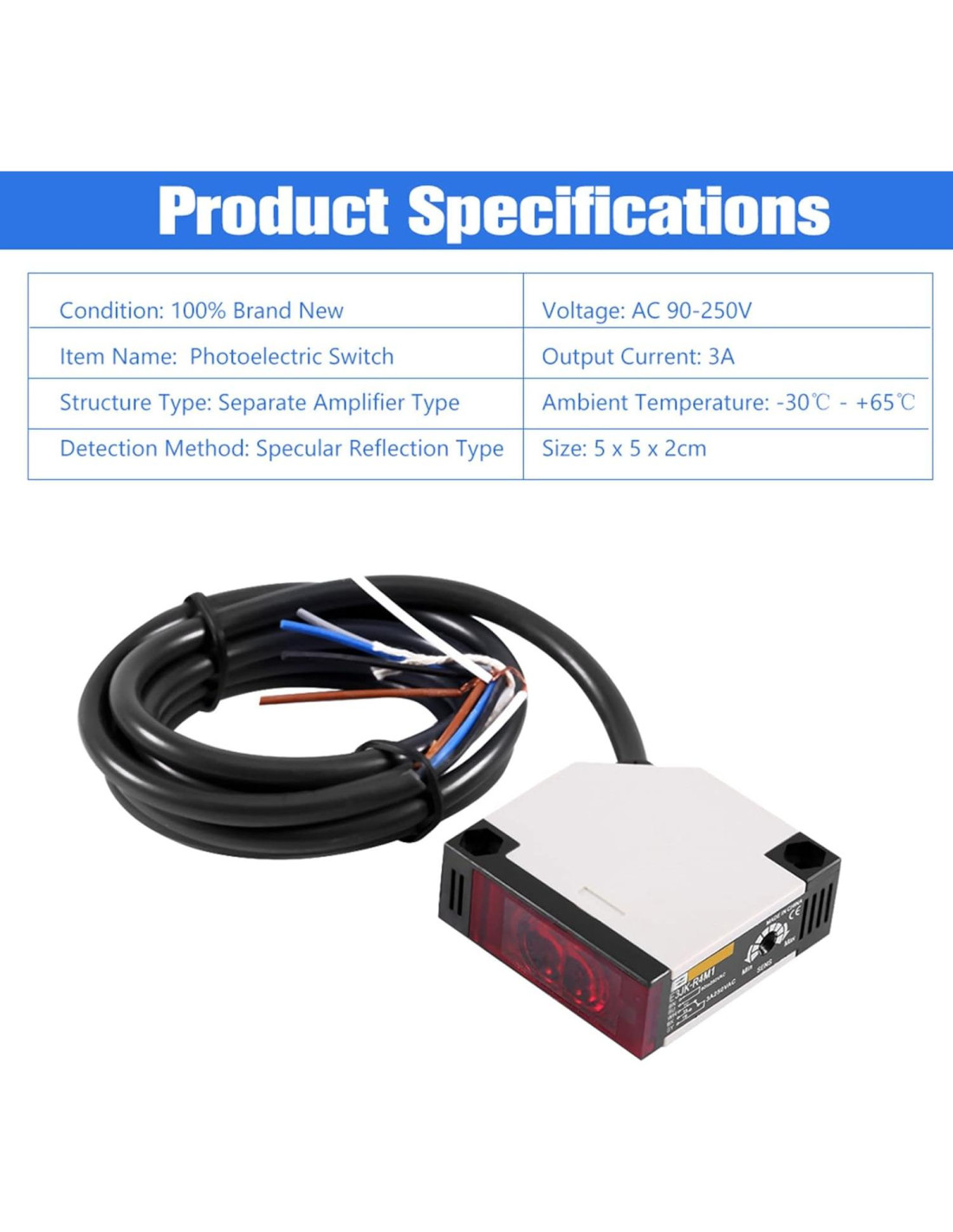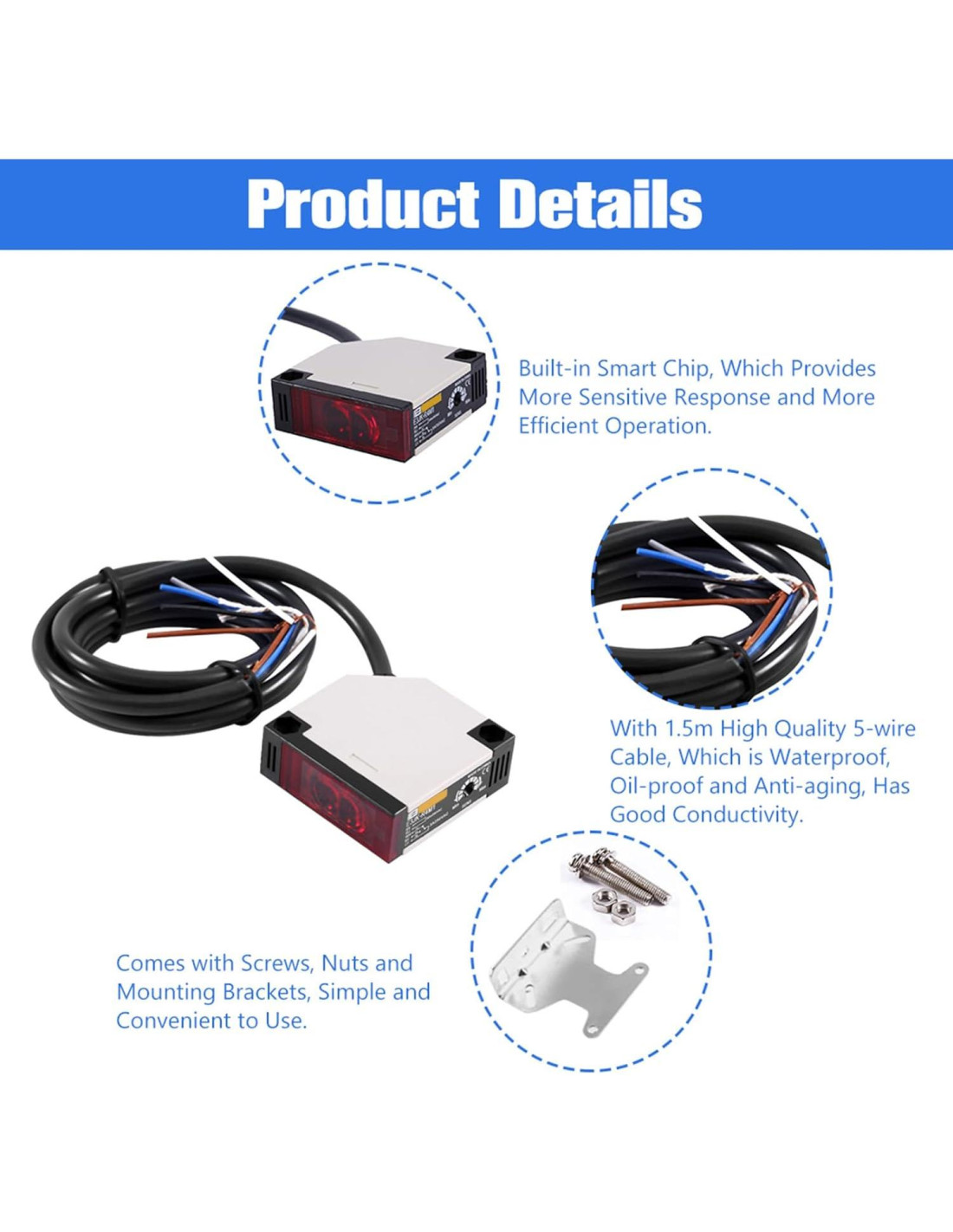 - Múltiples Beneficios: Este sensor de interruptor fotoeléctrico compacto y multifuncional cuenta con una vida útil más larga, mayor precisión y resistencia a interferencias de luz, electricidad y magnetismo.