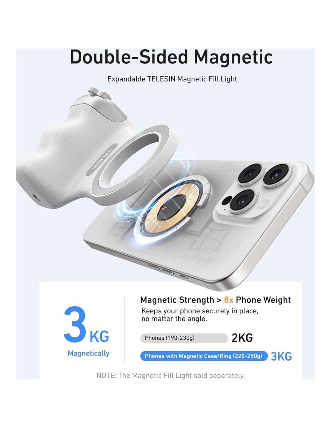 - Accesorios Versátiles: Funciona con la serie de luces de selfie magnéticas TELESIN y cuenta con conector de tornillo de trípode de 1/4" (0.64 cm) para mayor flexibilidad al agregar montura de trípode, micrófonos y más. Perfecto para mejorar cada aspecto de la fotografía y videografía móvil.