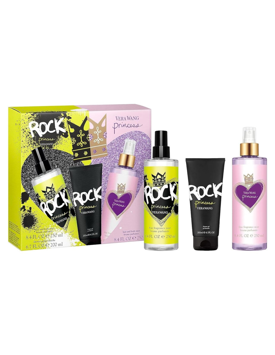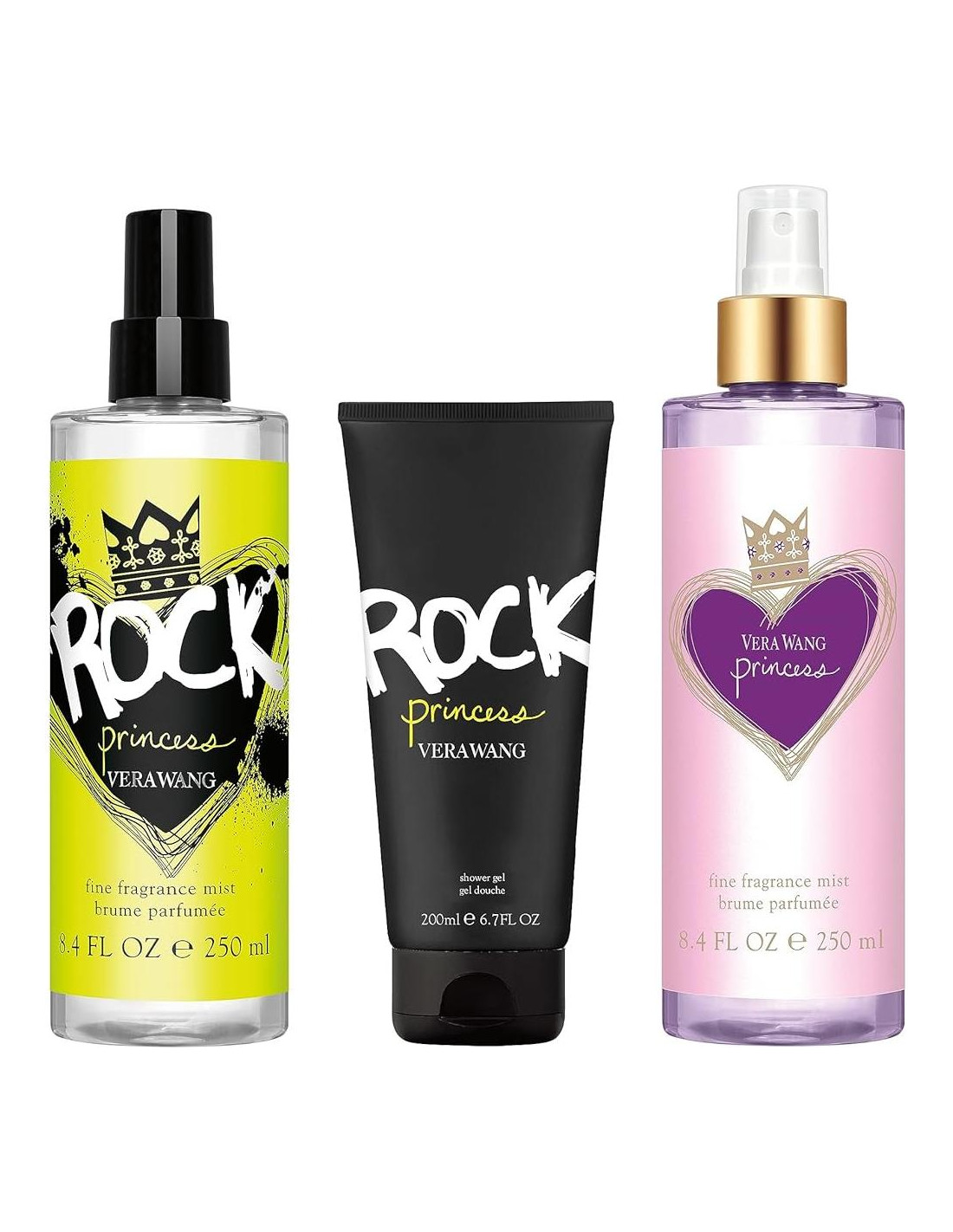 - El Set Incluye: Vera Wang Rock Princess Fragancia Mist 8.4 fl oz (248 ml) y Gel de Ducha 6.7 fl oz (198 ml) y Princess Fragancia Mist 8.4 fl oz (248 ml).
