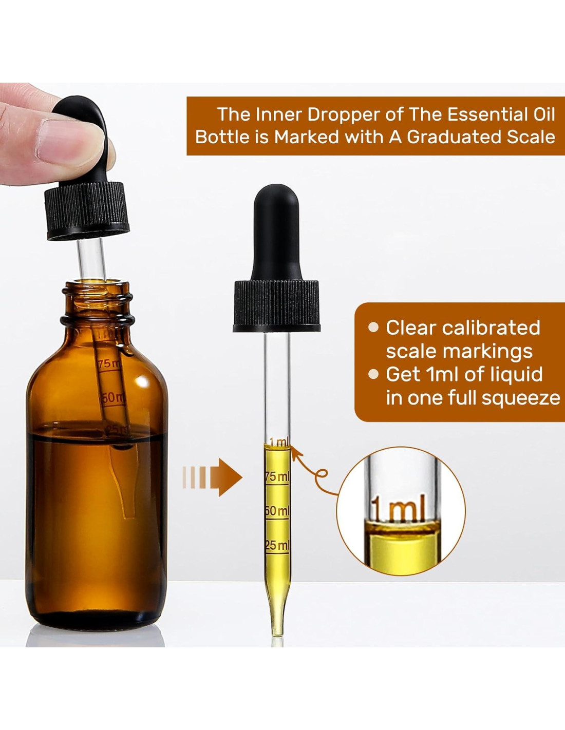 - Material de alta calidad: estas botellas de gotero de aceite esencial están hechas de vidrio ámbar fuerte y grueso, tapas de plástico grueso y tapas de silicona resistentes a la corrosión. Todas las partes son de grado alimenticio y libres de BPA.