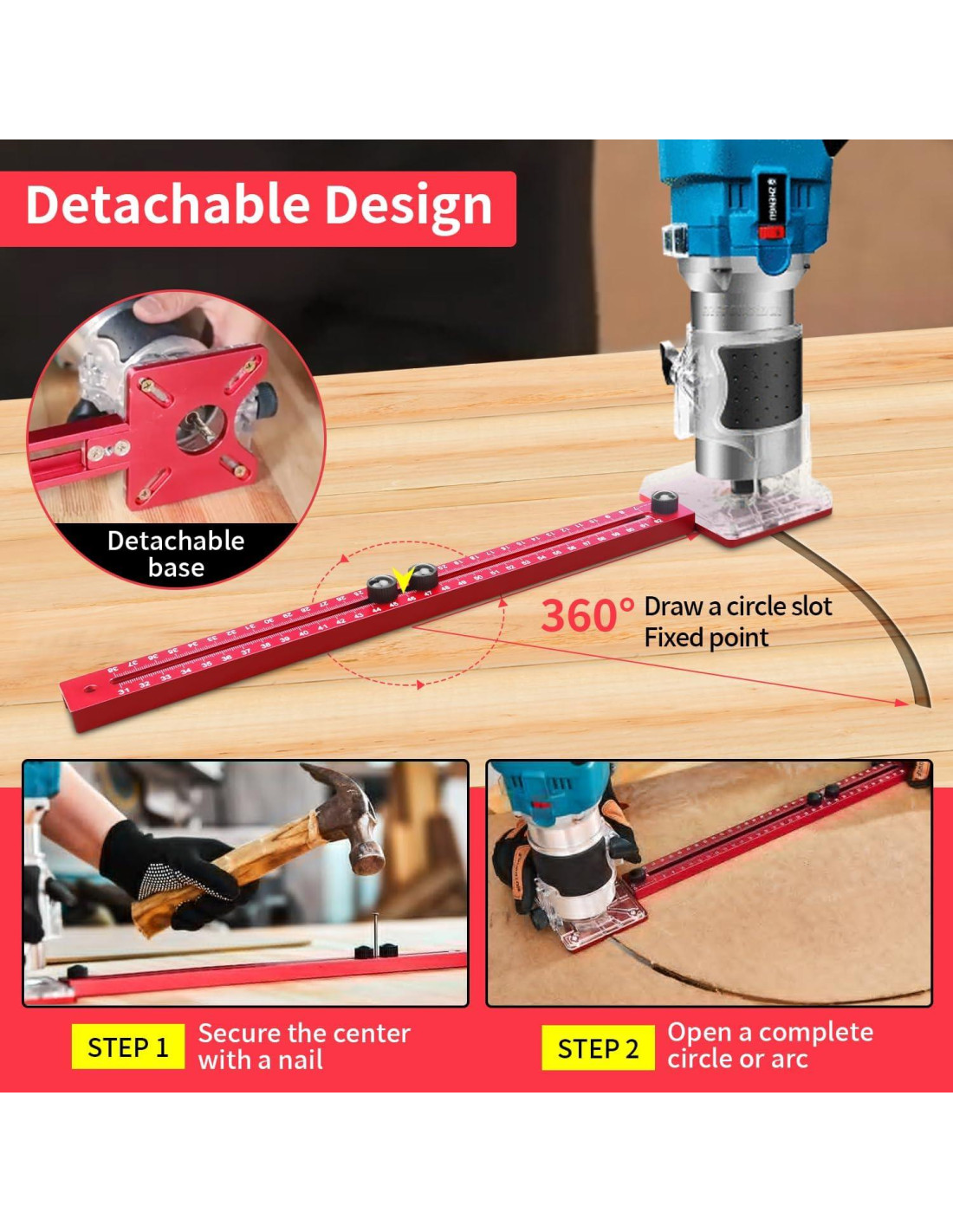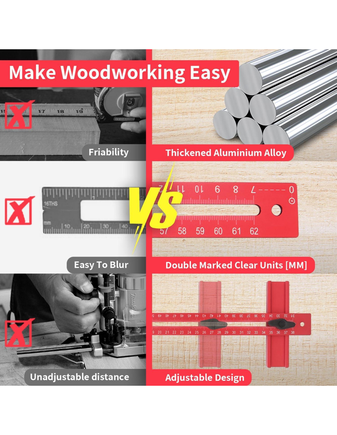 Esta herramienta se puede ajustar fácilmente la distancia y el radio para adaptarse a sus necesidades en varios escenarios de carpintería. Su adaptabilidad permite diversas operaciones de carpintería. Material de aleación de aluminio con endurecimiento, duradero y preciso, no fácil de humedecer y no fácil de deformar.