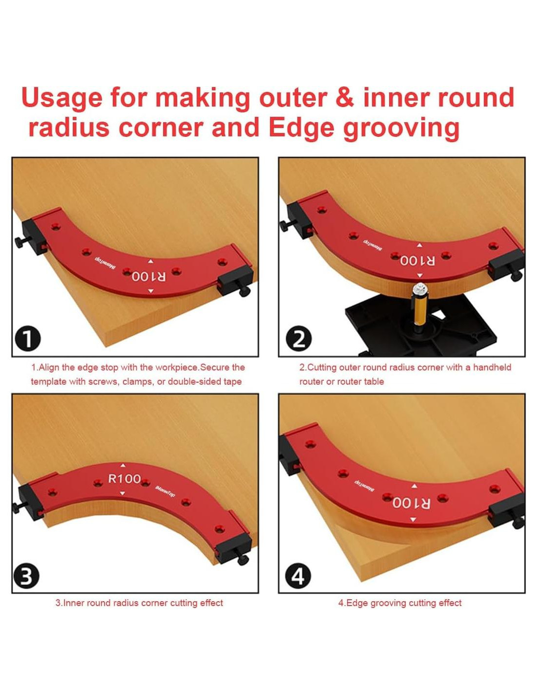 - Rápido y Fácil de Usar: Este jig de radio de router cuenta con paradas de borde ajustables, coloque la plantilla en la esquina deseada de la madera, mantenga presión o sujétela, y siga el router alrededor de la plantilla para hacer esquinas perfectamente redondeadas, la herramienta guía asegura esquinas de madera perfectamente redondas