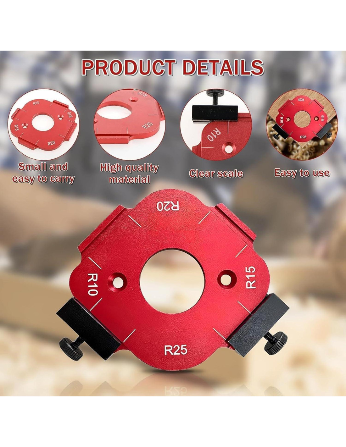 - Tamaños de Radio Versátiles (R10-R50): Incluye 8 plantillas intercambiables (R10/R15/R20/R25/R30/R35/R40/R50) para crear bordes, esquinas y curvas redondeadas perfectas para muebles, gabinetes y trabajos en madera decorativos.