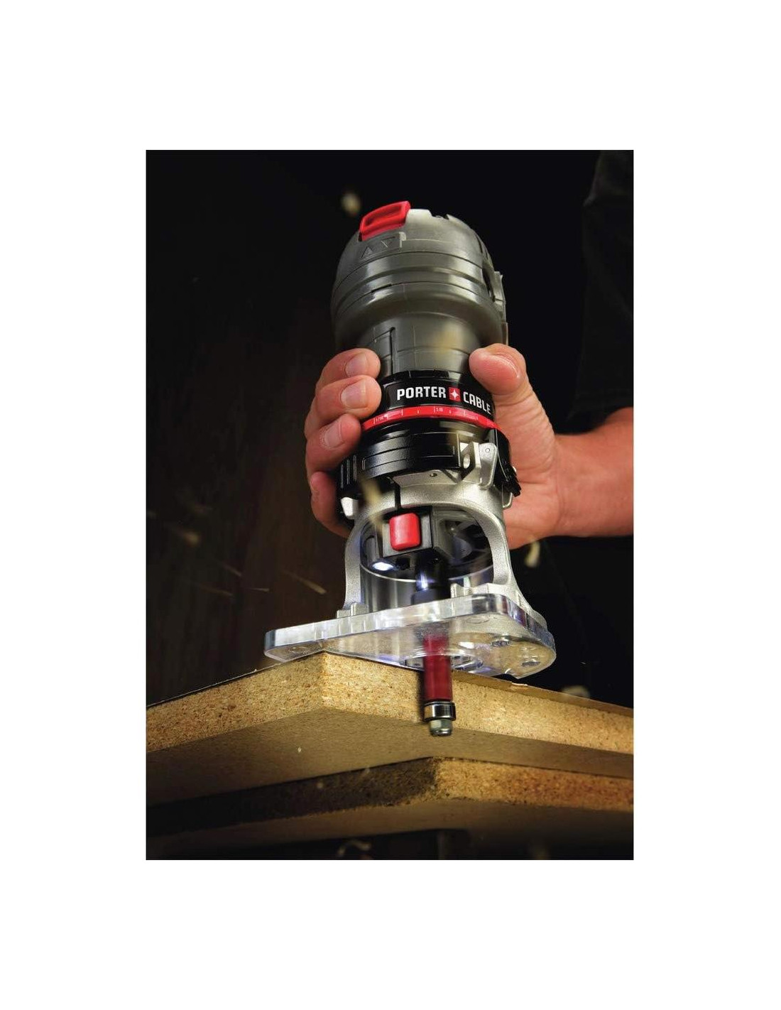 La fresadora de velocidad única PCE6430 de PORTER-CABLE produce unas impresionantes 31,000 rpm generadas por su motor de 4.5 amperios. Esto proporciona suficiente potencia y durabilidad para permitirte cortar a través de todo tipo de materiales laminados. Asegurando en última instancia que esta fresadora es la elección ideal para el enrutamiento de bisagras, recortes de bordes pequeños y la mayoría de las demás aplicaciones de recorte general. Una característica adicional destacada es la ergonomía inteligente de esta unidad que proporciona un confort y control superiores mientras solo requiere una aplicación con una mano. La fresadora ofrece una base fija de aluminio fundido mecanizada con precisión que proporciona durabilidad a largo plazo, junto con clips de bloqueo extra grandes que permiten una rápida liberación del motor y un ajuste de profundidad grueso. Finalmente, un anillo de profundidad adjunto permite ajustes rápidos y precisos de la altura de la broca, mientras que el botón de bloqueo del husillo permite cambios de broca con una sola llave. Esta unidad viene con una luz LED y una base sub-base clara para máxima visibilidad durante la operación. Esta fresadora también cuenta con un diámetro de casquillo de 1/4 pulgadas. Incluye: (1) Motor (1) Base fija estándar (1) Casquillo de 1/4 pulgadas (1) Llave de casquillo (1) Guía de borde recto (1) Manual de operación Características: 31,000 rpm, motor de 4.5 amperios para potencia de corte y durabilidad Diseñada ergonómicamente para un control cómodo con una sola mano Durabilidad extendida resultante del diseño mecanizado con precisión y base fija de aluminio fundido Clips de bloqueo son extra largos para una rápida liberación del motor Ajustes rápidos y precisos de la altura de la broca proporcionados por el anillo de profundidad adjunto. Botón de bloqueo del husillo para cambios de broca con una sola llave Luz LED y sub-base clara aseguran máxima visibilidad en operación
