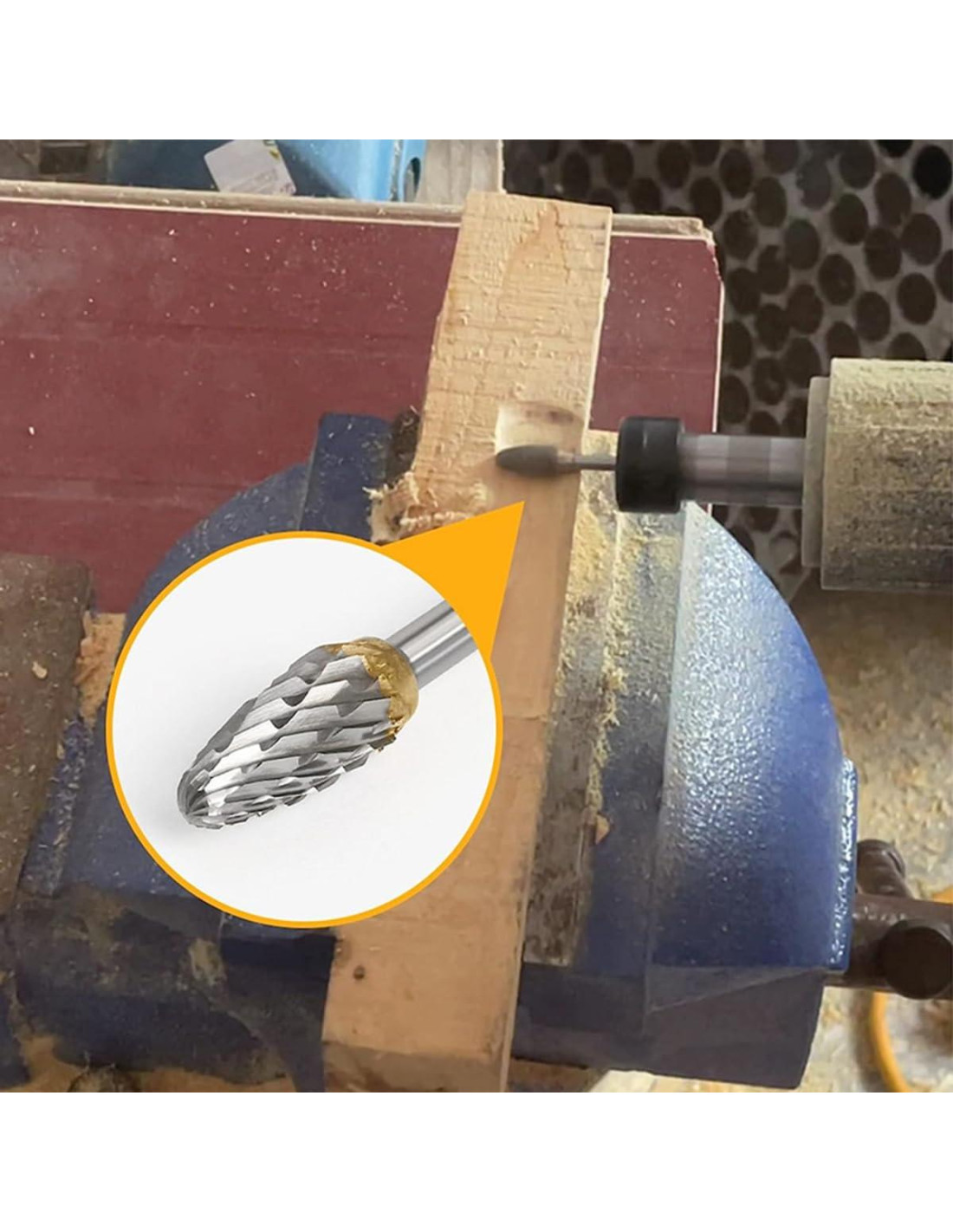 - [DISEÑO DE DOBLE CORTE] : Las líneas de ranura de la cabeza de estos buriles rotativos de carburo están cruzadas, lo que los hace más adecuados para materiales de densidad relativamente baja, como madera, plástico y aluminio.