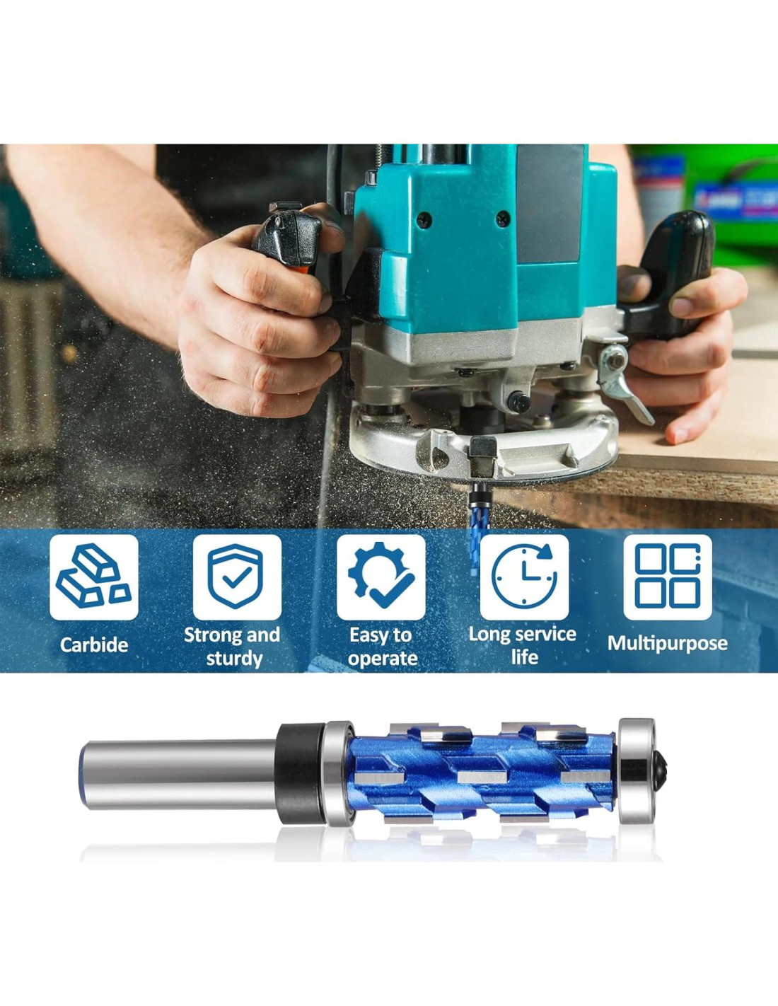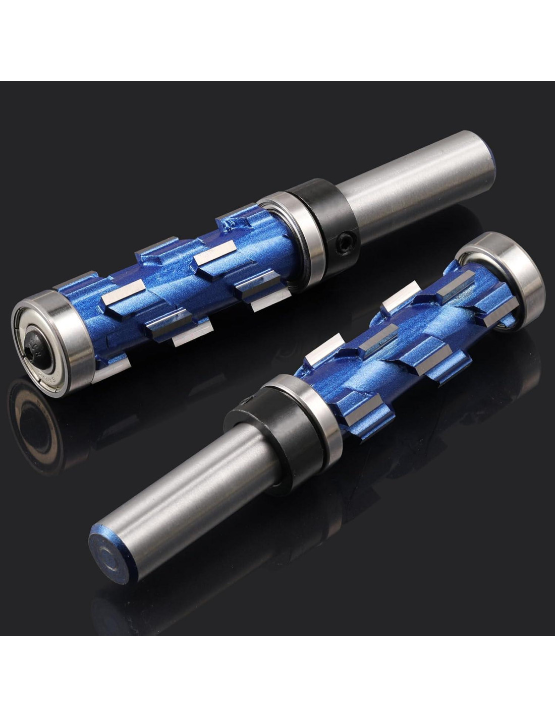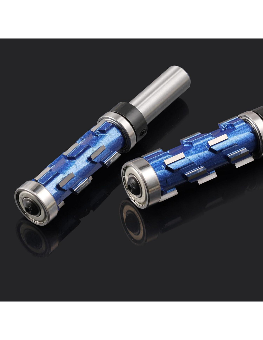 - [Afiladas y Eficientes] La fresa de recorte flush profesional de 1/2" de vástago cuenta con un diseño de 12 filos. Con múltiples cuchillas que son más afiladas que las cabezas de recorte flush tradicionales para una mejor eliminación de virutas de madera. Fresa de recorte flush de 1/2" de vástago con un robusto diseño de doble rodamiento. Corte suave: dos rodamientos para facilitar el rodado de la madera. La fresa de recorte flush presenta un diseño de compresión que previene el astillado.