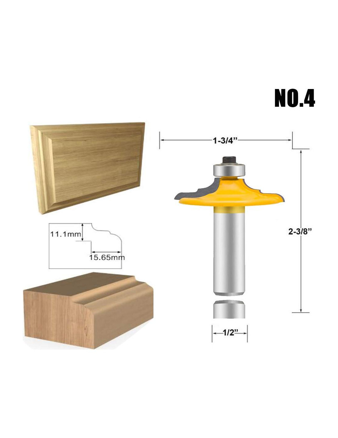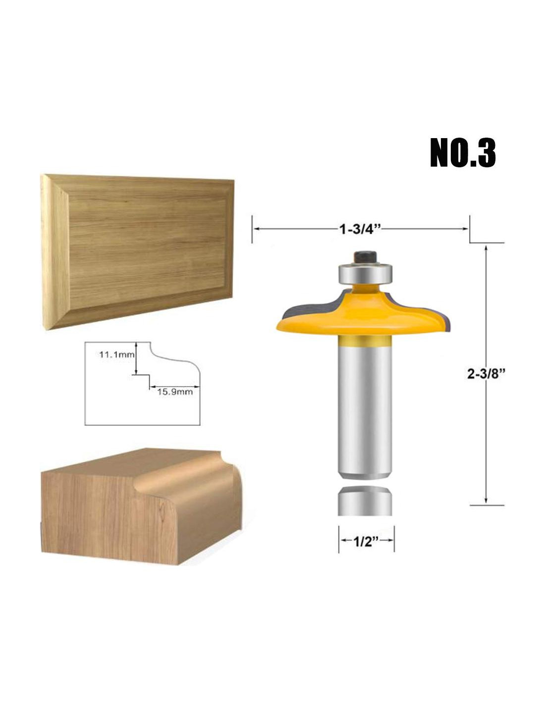 - {Tamaño Premium}--4 bordes para frentes de puertas y cajones. Este juego de bordes incluye 1 fresa de thumbnail, 2 fresas ogee (1 grande y 1 pequeña) y 1 redondeo con fresa ogee. Ejes de 1/2 pulgada (12.7 mm).