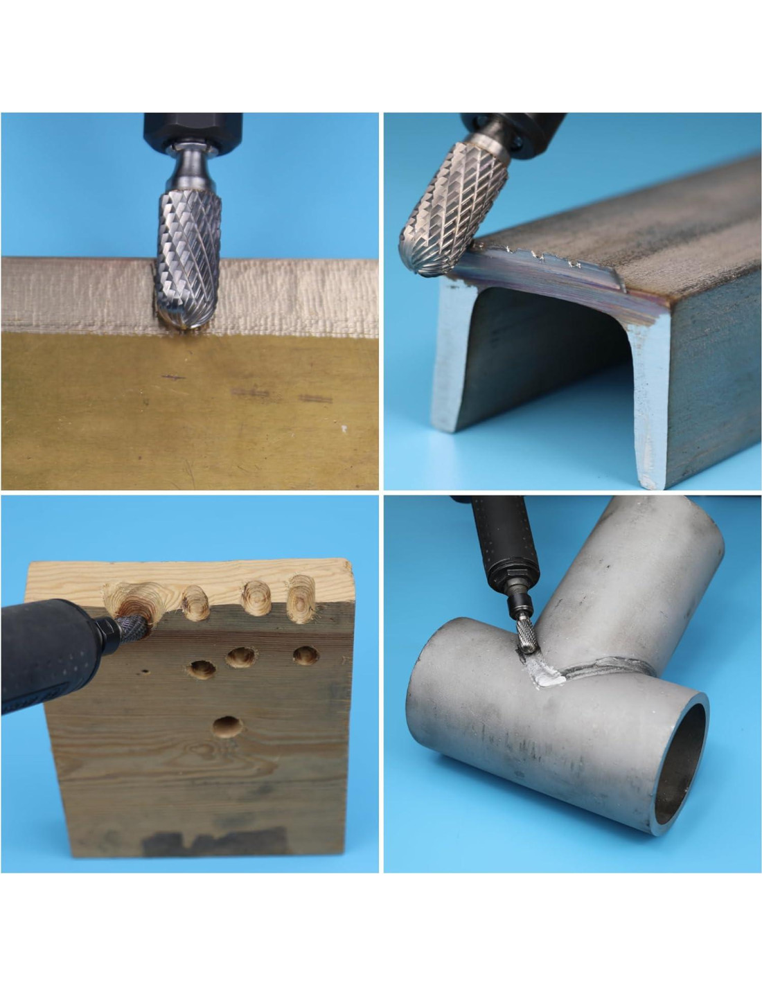 - Versátil: tallado, chaflanado, limpieza, contorneado, corte, desbarbado, alargado, grabado, rectificado, trabajo en metal, fresado, MRO, pulido, portado, esculpido, modelado, afilado, herramientas, recorte, metal, madera, piedra, acero, concreto, soldaduras y plástico, etc.
