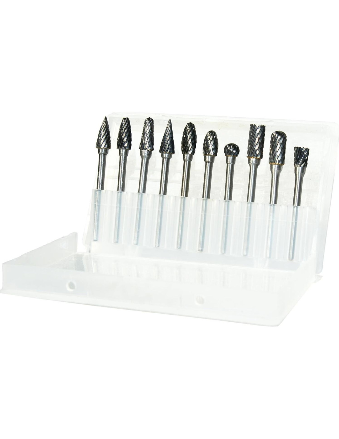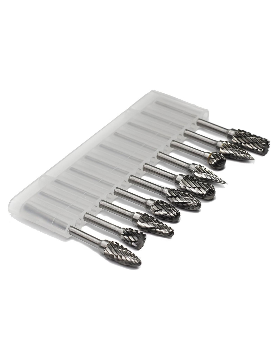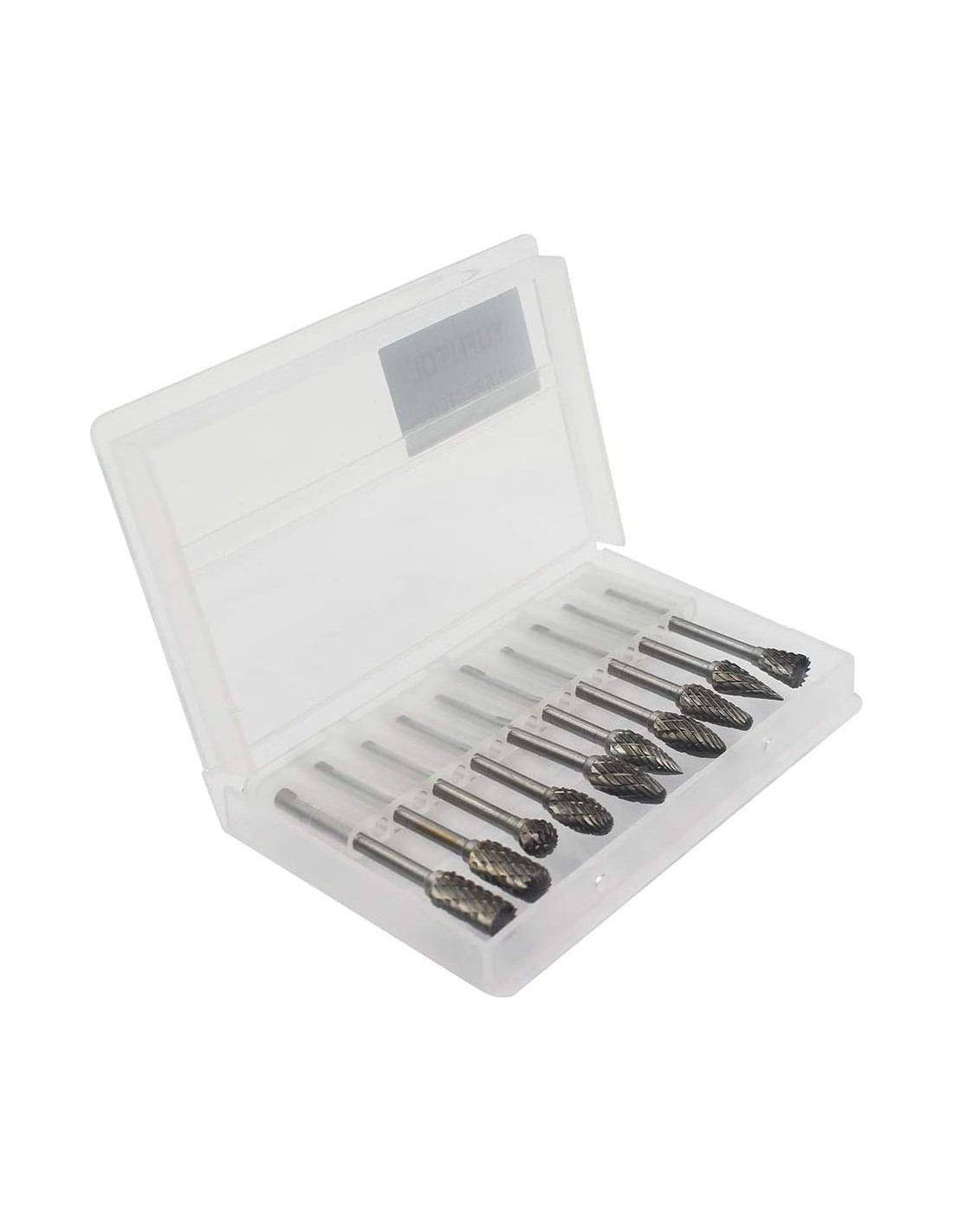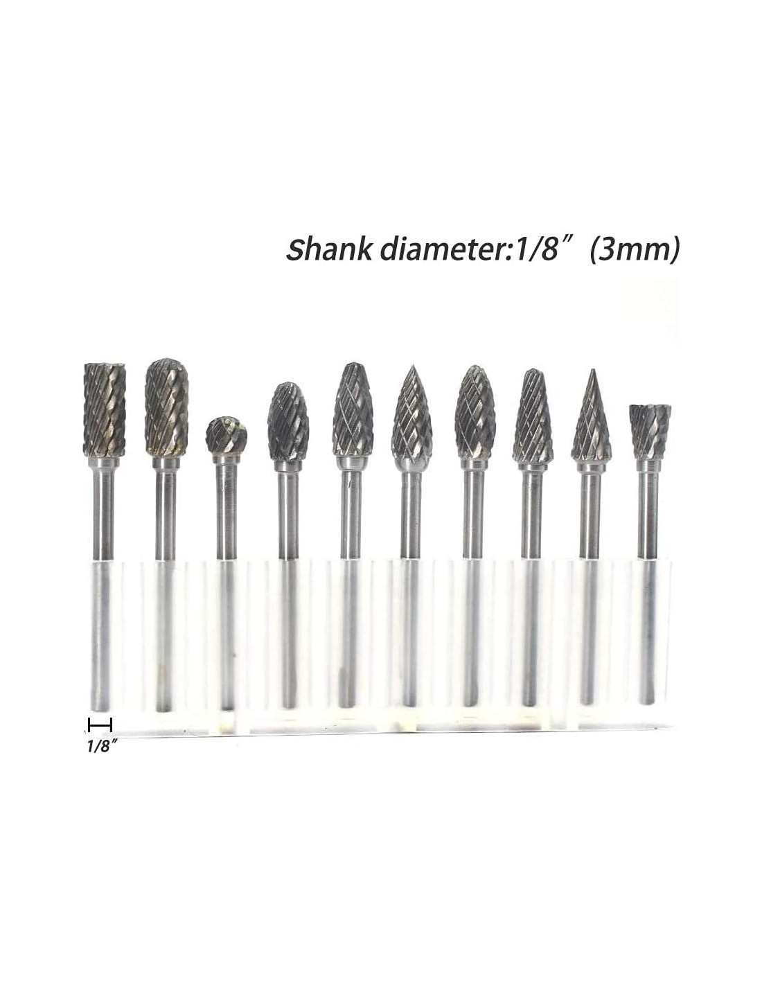 - [Cantidad] 10 piezas Juego de Fresas Rotativas de Carburo Sólido de Doble Corte, vástago de 3mm (0.118 pulgadas), se adapta a Dremel y la mayoría de herramientas rotativas pequeñas