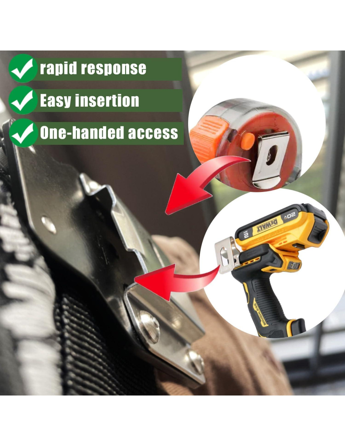 - Trabajo Eficiente: Los clips de herramientas prácticos facilitan llevar las herramientas que necesitas sin perder tiempo buscándolas, haciendo tu trabajo más productivo