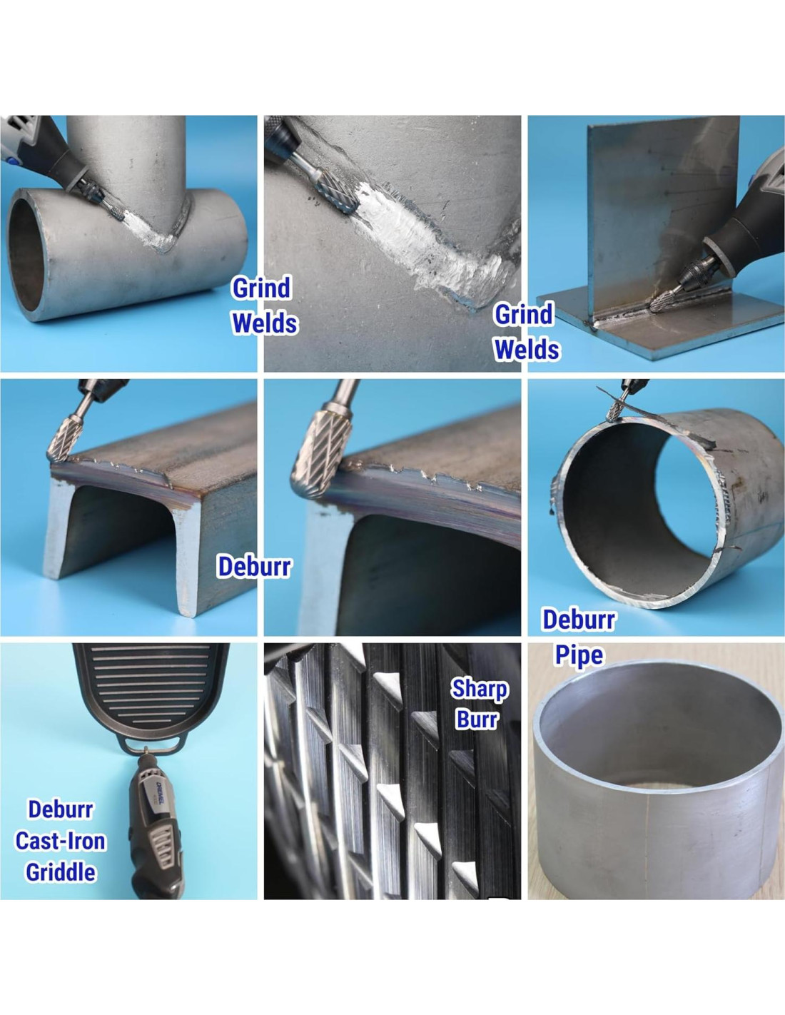 - Muy afilado, agresivo, resistente, bien equilibrado y duradero, perfecto para espacios reducidos en comparación con discos de rectificado. Ideal para trabajos de detalle, para la eliminación de muchos materiales, brocas de vástago más grandes óptimas.