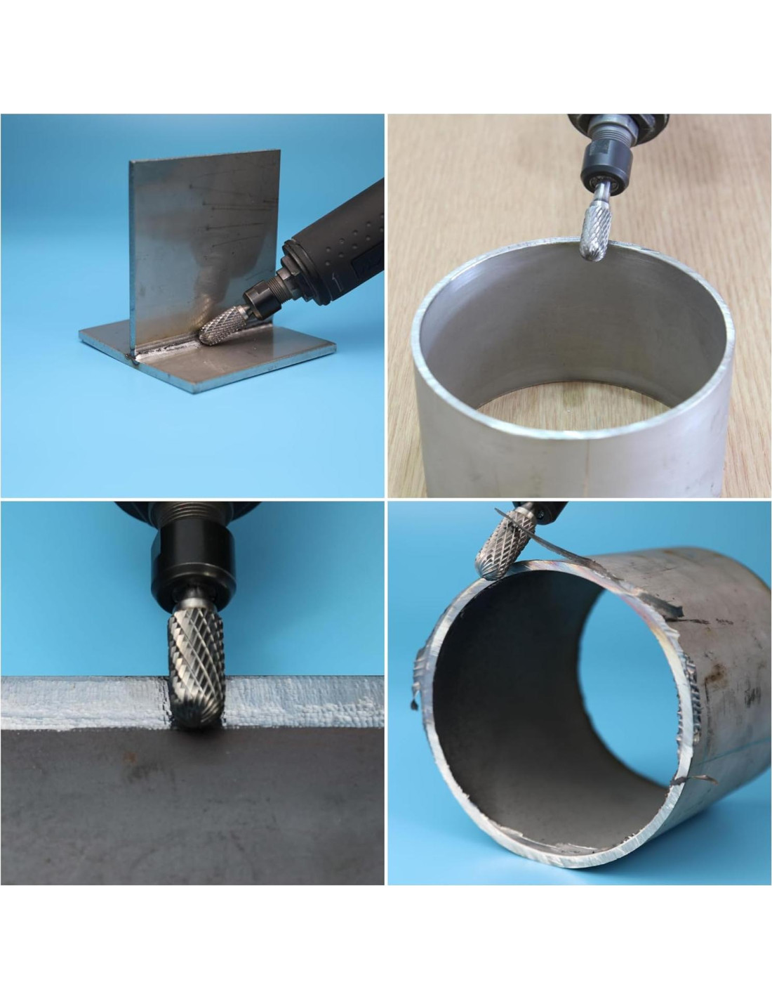 - Versátil: tallado, biselado, limpieza, contorneado, corte, desbarbado, alargado, grabado, molienda, trabajo en metal, fresado, MRO, pulido, portado, esculpido, modelado, afilado, recorte, metal, madera, piedra, acero, concreto, soldaduras y plástico, etc.
