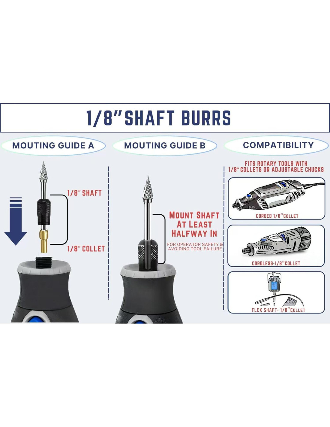 - ADAPTABILIDAD: El mango de 1/8" (3.175 mm) es compatible con Dremel, Hardell, Milwaukee y la mayoría de otras herramientas rotativas pequeñas con mandril de tres garras para un centrado preciso. Una opción ideal para tu carpintería de bricolaje, tallado, grabado y pulido, y es fácil de agarrar y usar, seguro y confiable.