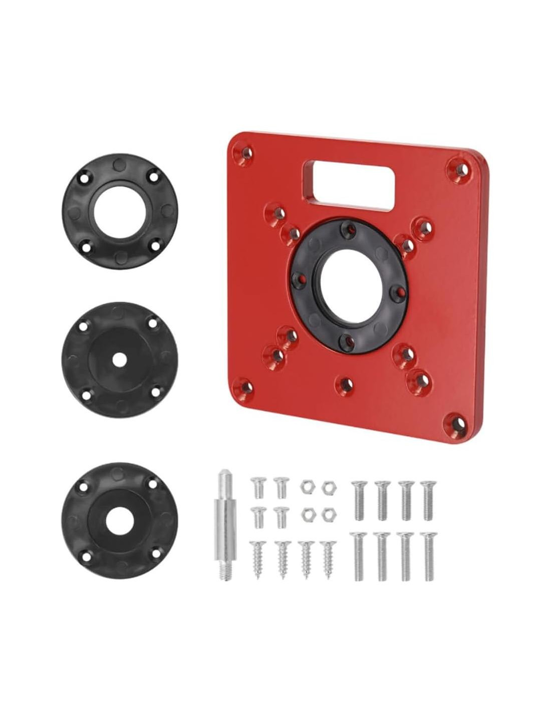 Característica: [Material de alta calidad] Hecho de aleación de aluminio, fácil de usar, no se oxida fácilmente y tiene una vida útil más larga. [Previene rayones] El rojo es más brillante y conspicuo, y la cubierta roja protege la placa de inversión de rayones. [Fácil de usar] Se utiliza un casquillo de orificio central conveniente para alinear el router de modo que esté centrado en el orificio de perforación, facilitando la perforación e instalación precisa de cualquier router. [Fácil de instalar] Fácil de instalar, te proporciona dos tipos de orificios de montaje para tornillos para satisfacer diferentes recortadoras. [Amplia aplicación] Adecuado para hacer mesas de perforación y fresado, carpintería de alta precisión, etc. Especificación: Nombre del producto: Placa de Inserción para Mesa de Router Material del producto: Aleación de Aluminio Color del producto: Rojo Tamaño del producto: Como se muestra Potencia de entrada nominal: 300W Velocidad sin carga: 3000 rpm Rango de voltaje nominal: AC monofásico y DC 50V por encima de 250V y por debajo del paquete incluido: 1 Juego de Placa de Inserción para Mesa de Router
