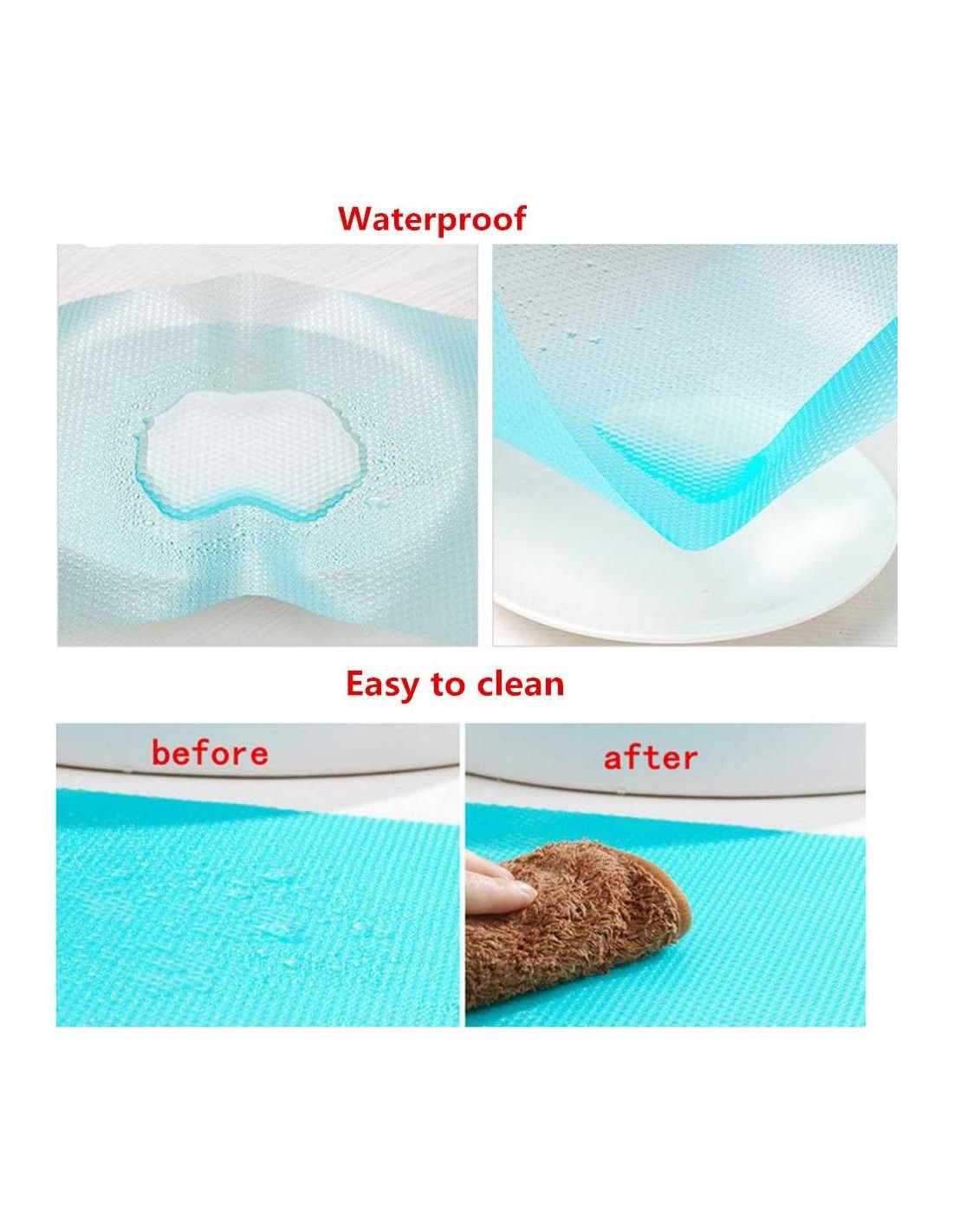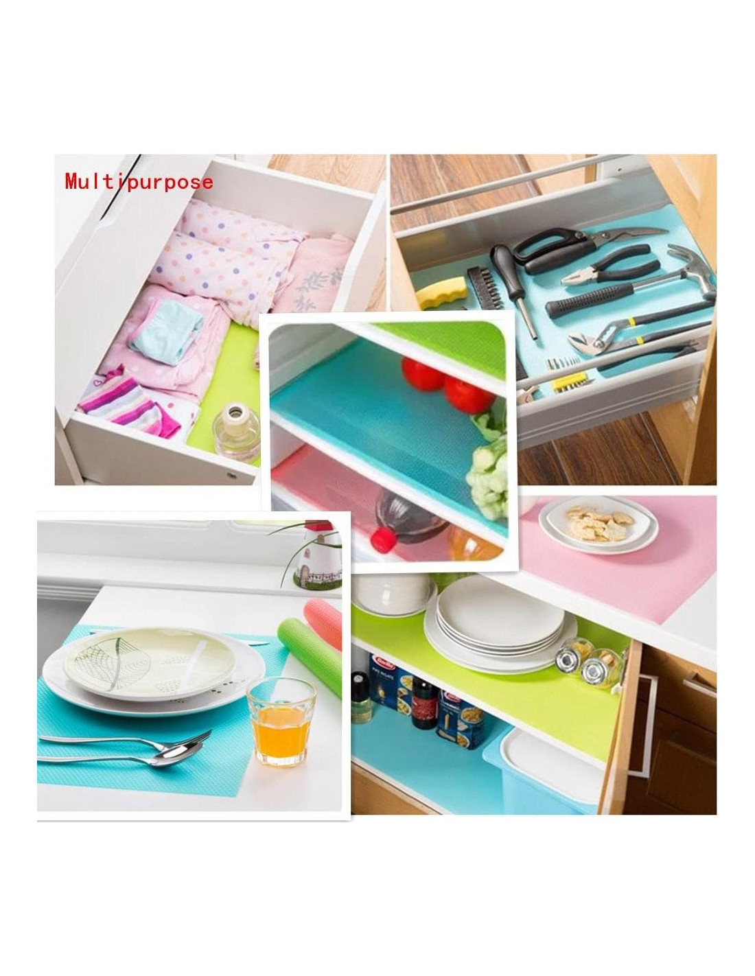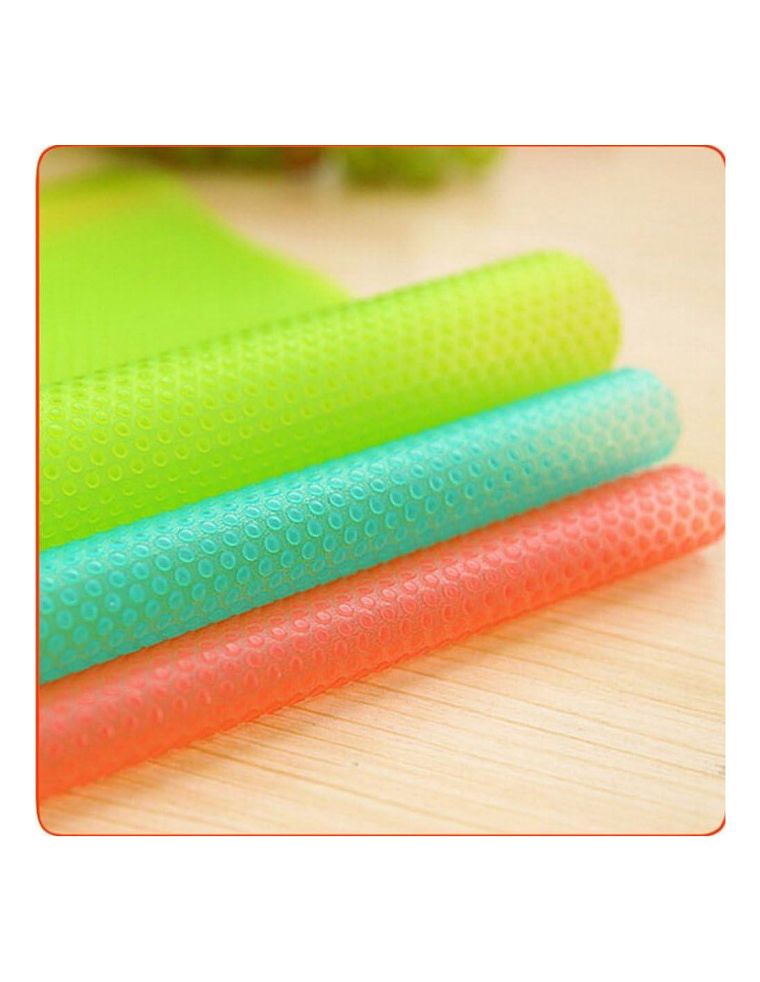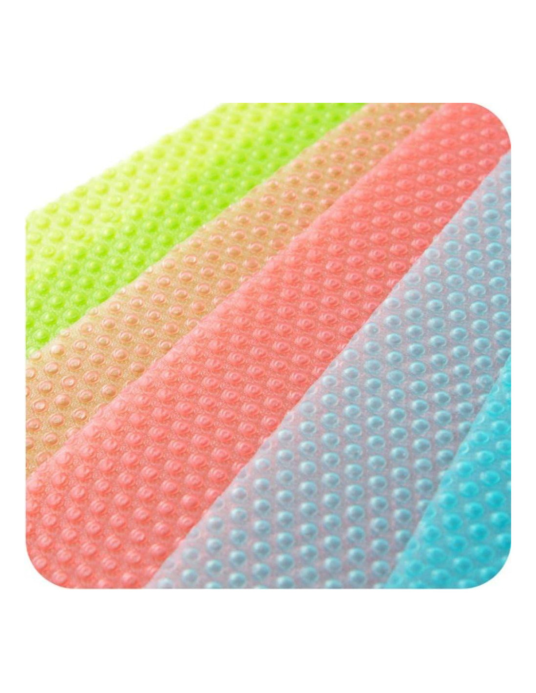 Material: EVA, Seguro para estar en contacto directo con alimentos. Seguro para almacenar frutas y verduras en el refrigerador. MULTIFUNCIONAL: Se puede cortar en cualquier tamaño que necesites, utilizado como una alfombrilla para refrigerador para mantener las frutas y verduras más frescas, embellecer tus estanterías, cajones, encimeras, mesas de comedor o incluso escritorios. Hecho de forros de espuma porosa para refrigerador, presenta un efecto de amortiguación. Fácil de limpiar y rápido de secar. TAMAÑO: Tamaño: 45x30x0.1cm (17.69x11.4x0.04), Paquete Incluye: 5Pcs (Color aleatorio), Resistente al calor: 80C ~ -30C.